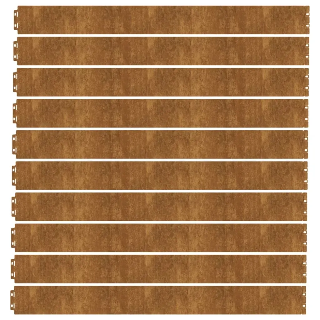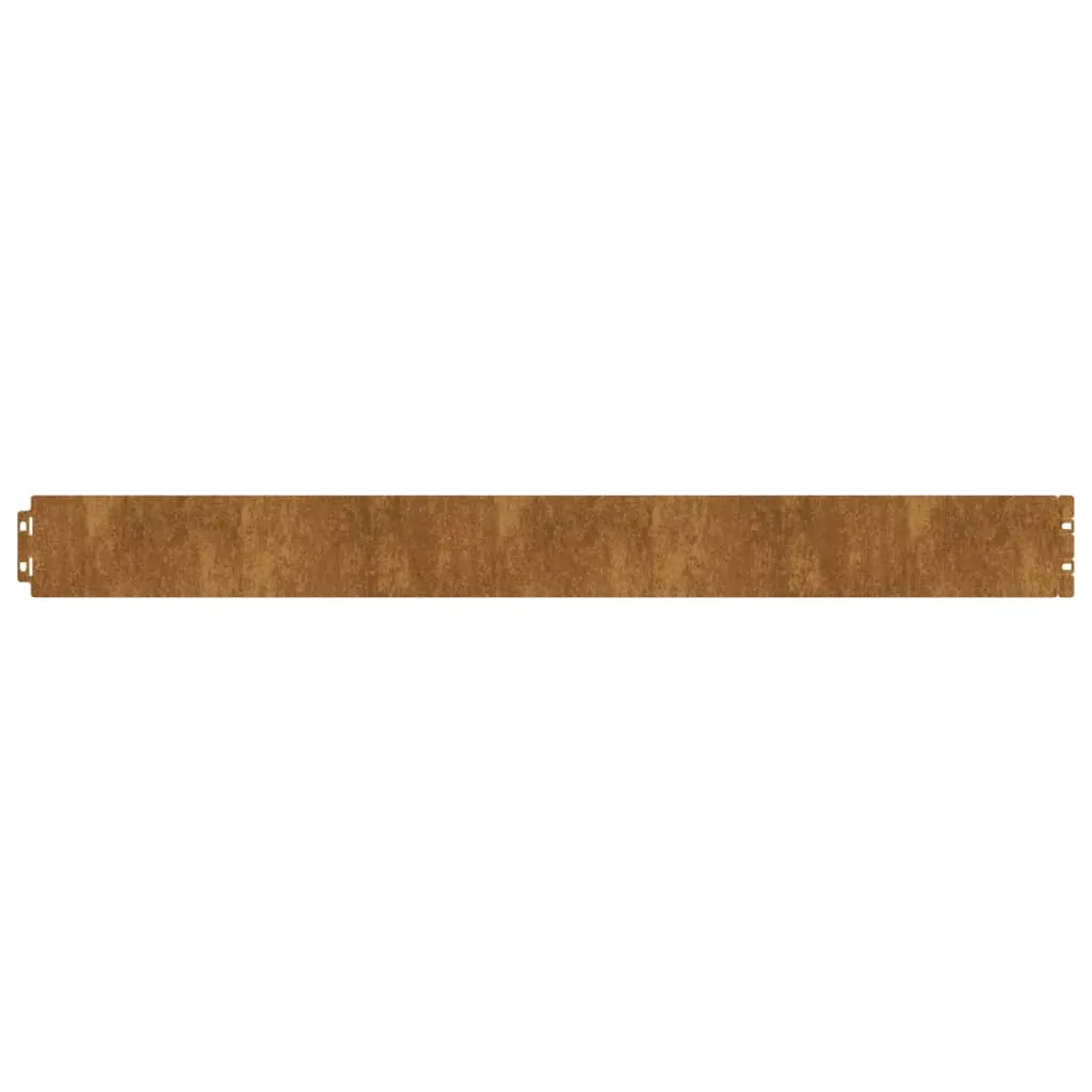 These lawn edgings create clear boundaries for gardens, paths, lawns, and yards, preventing grassroots from spreading into flower beds and adding visual charm to your landscape. Durable material: Corten steel, also known as weathering steel. This is anti-corrosive by its very nature. It develops a rusty protective layer against corrosion when first exposed to atmospheric conditions. Thus, you don't need to paint it. This can help you save on maintenance and repair costs. The distinctive brown colour on the corten steel will surely be an eye-catcher. Finally, weathering steel is exceptionally durable and will stand up to the test of time.Quick and easy connection: The smart interconnecting system makes it easy to connect the edging segments without the need for any tool.Wide applications: This versatile lawn edging is widely used in outdoor spaces such as gardens, courtyards, forested areas, pathways, driveways, flowerbeds, and more. Good to know:This product is not rusted yet and has a normal metal colour when you receive it, but rust will develop over time. You could speed up the rusting process by spraying it with soap water and salt water. To keep your clothes stain-free, avoid contact with the developing rust layer.