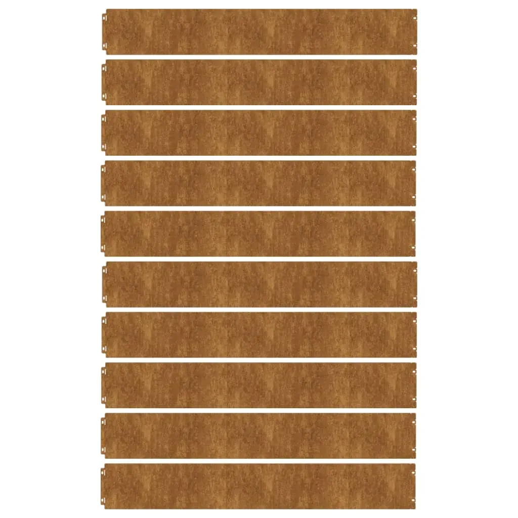 These lawn edgings create clear boundaries for gardens, paths, lawns, and yards, preventing grassroots from spreading into flower beds and adding visual charm to your landscape. Durable material: Corten steel, also known as weathering steel. This is anti-corrosive by its very nature. It develops a rusty protective layer against corrosion when first exposed to atmospheric conditions. Thus, you don't need to paint it. This can help you save on maintenance and repair costs. The distinctive brown colour on the corten steel will surely be an eye-catcher. Finally, weathering steel is exceptionally durable and will stand up to the test of time.Quick and easy connection: The smart interconnecting system makes it easy to connect the edging segments without the need for any tool.Wide applications: This versatile lawn edging is widely used in outdoor spaces such as gardens, courtyards, forested areas, pathways, driveways, flowerbeds, and more. Good to know:This product is not rusted yet and has a normal metal colour when you receive it, but rust will develop over time. You could speed up the rusting process by spraying it with soap water and salt water. To keep your clothes stain-free, avoid contact with the developing rust layer.