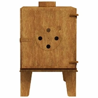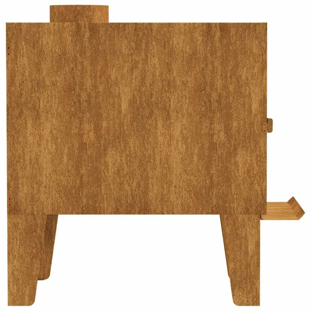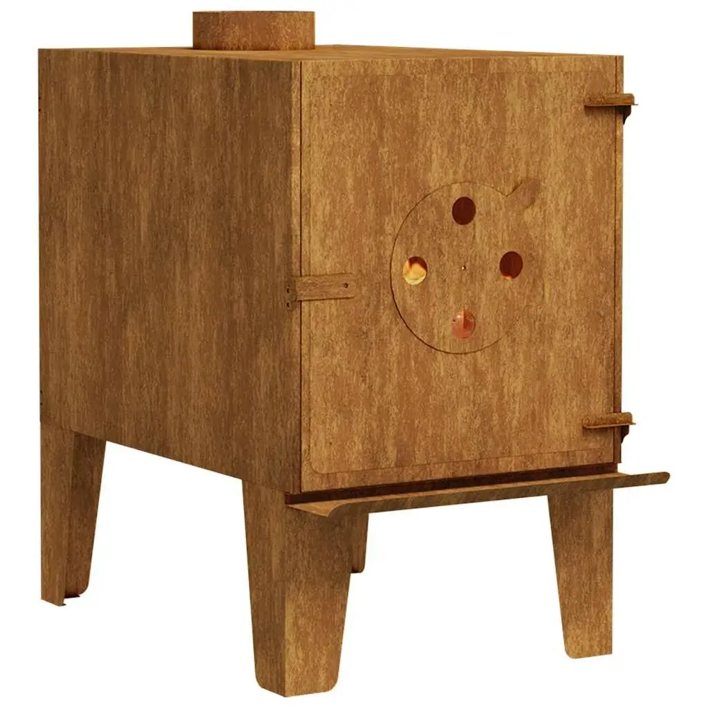 With this camping stove, you can enjoy a hot meal wherever you are and whenever you want! Durable material: Corten steel, also known as weathering steel. This is anti-corrosive by its very nature. It develops a rusty protective layer against corrosion when first exposed to atmospheric conditions. Thus, you don't need to paint it. This can help you save on maintenance and repair costs. The distinctive brown colour on the corten steel will surely be an eye-catcher. Finally, weathering steel is exceptionally durable and will stand up to the test of time.Extra stability: The 4 legs of the outdoor stove ensure extra sturdiness and stability.Versatile camping stove: This tent stove brings you warmth. At the same time, you can use it to boil water or prepare food.Practical design: With the ventilation holes and the adjustable vent on the front door, you can easily control the fire. The chimney on the top ensures smooth ventilation of the smoke generated during heating and cooking. Good to know:This product is not rusted yet and has a normal metal colour when you receive it, but rust will develop over time. You could speed up the rusting process by spraying it with soap water and salt water. To keep your clothes stain-free, avoid contact with the developing rust layer. Warning:This product will become very hot, do not move it during operation.Do not use indoors!Do not use spirit or petrol for lighting or re-lighting! Use only firelighters complying to EN 1860-3!Keep children and pets away.Do not use the product in a confined and/or habitable space e.g. houses, tents, caravans, motor homes, boats. Danger of carbon monoxide poisoning fatality.