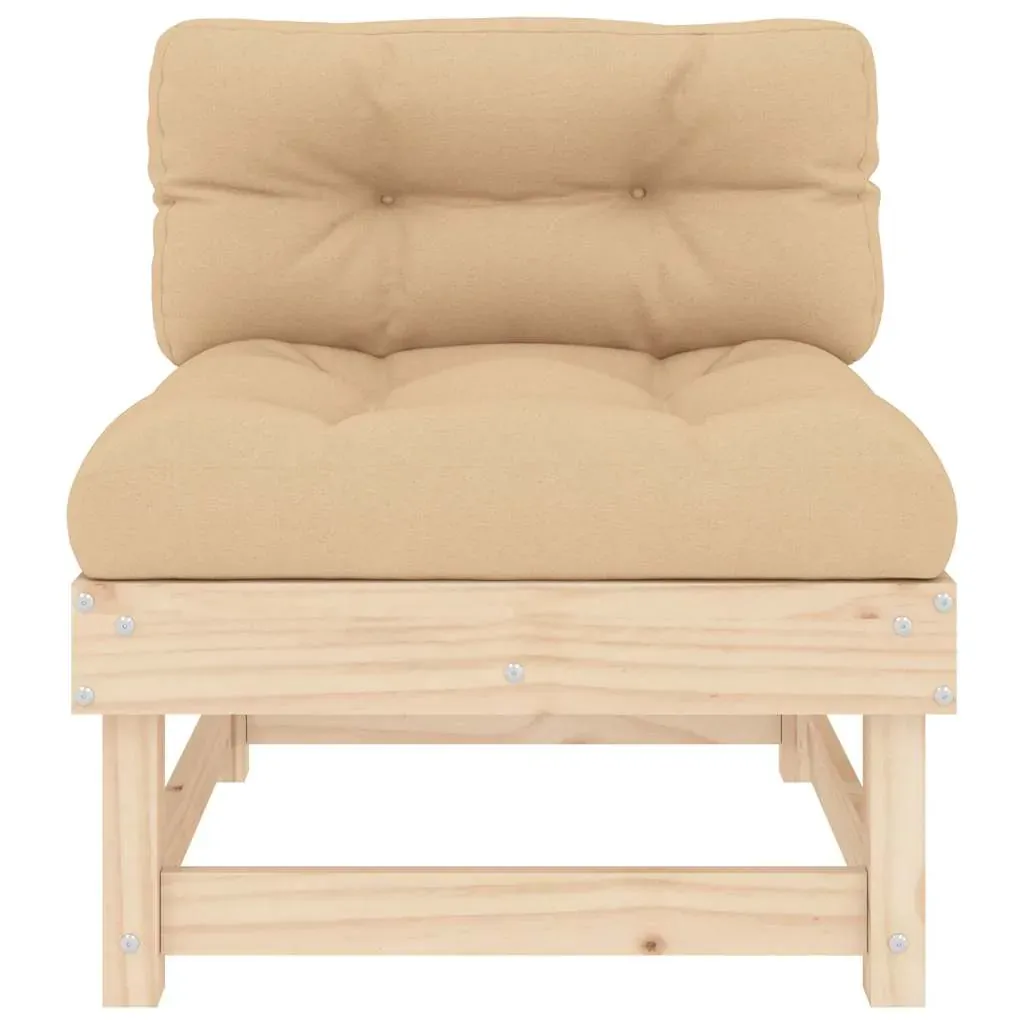 This wooden middle sofa, standing out with the slatted design and soft cushions, will make a great addition to your garden, patio, or terrace for enjoying a cosy time with your family or friends. Solid pine wood: Solid pine wood is a beautiful natural material. Pine wood has a straight grain, and the knots give the material its signature, rustic look.Sturdy and stable frame: The wooden frames make the garden sofa sturdy and stable for daily outdoor use.Comfortable seat experience: The backrest adds extra seating comfort for the outdoor sofa. Also, the thickly padded cushion provides comfort for your sitting time.Modular design: The sectional sofa is flexible and easy to move around. You can combine it with other modular segments in the webshop to create your own personal garden lounge set configurations! Good to know:To make sure your outdoor furniture stays beautiful, we recommend protecting it with a waterproof cover.