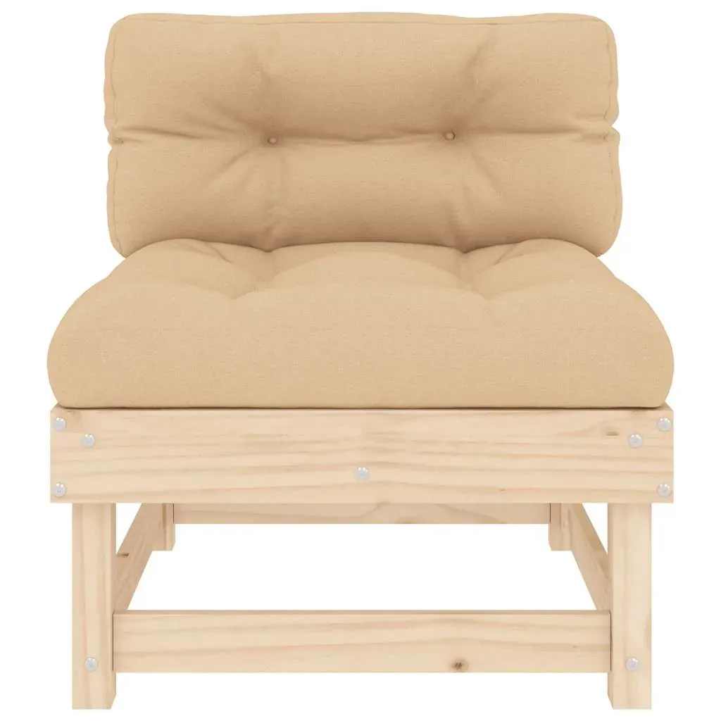 These wooden middle sofas, standing out with the slatted design and soft cushions, will make a great addition to your garden, patio, or terrace for enjoying a cosy time with your family or friends. Solid pine wood: Solid pine wood is a beautiful natural material. Pine wood has a straight grain, and the knots give the material its signature, rustic look.Sturdy and stable frame: The wooden frames make the garden sofa sturdy and stable for daily outdoor use.Comfortable seat experience: The backrest adds extra seating comfort for the outdoor sofa. Also, the thickly padded cushion provides comfort for your sitting time.Modular design: The sectional sofa is flexible and easy to move around. You can combine it with other modular segments in the webshop to create your own personal garden lounge set configurations! Good to know:To make sure your outdoor furniture stays beautiful, we recommend protecting it with a waterproof cover.