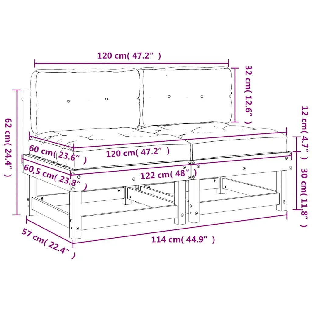 These wooden middle sofas, standing out with the slatted design and soft cushions, will make a great addition to your garden, patio, or terrace for enjoying a cosy time with your family or friends. Solid pine wood: Solid pine wood is a beautiful natural material. Pine wood has a straight grain, and the knots give the material its signature, rustic look.Sturdy and stable frame: The wooden frames make the garden sofa sturdy and stable for daily outdoor use.Comfortable seat experience: The backrest adds extra seating comfort for the outdoor sofa. Also, the thickly padded cushion provides comfort for your sitting time.Modular design: The sectional sofa is flexible and easy to move around. You can combine it with other modular segments in the webshop to create your own personal garden lounge set configurations! Good to know:To make sure your outdoor furniture stays beautiful, we recommend protecting it with a waterproof cover.