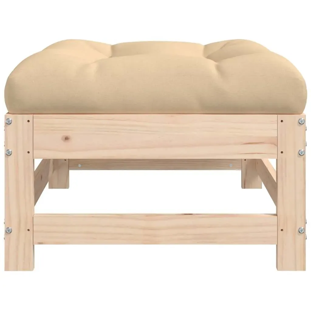 This wooden garden footstool, standing out with the slatted design and soft cushion, will make a great addition to your garden, patio, or terrace for enjoying a cosy time with your family or friends. Solid pine wood: Solid pine wood is a beautiful natural material. Pine wood has a straight grain, and the knots give the material its signature, rustic look.Sturdy and stable frame: The wooden frames make the footstool sturdy and stable for daily outdoor use.Soft cushion: The thickly padded seat cushion of the footrest adds the utmost comfort.Modular design: The outdoor footstool is flexible and easy to move around. You can combine it with other modular segments in the webshop to create your own personal garden lounge set configurations! Good to know:To make sure your outdoor furniture stays beautiful, we recommend protecting it with a waterproof cover.