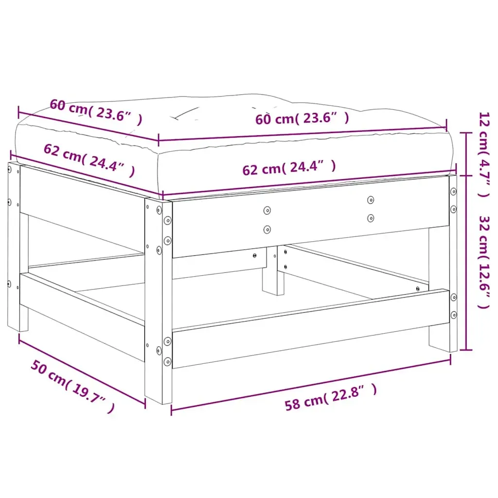 This wooden garden footstool, standing out with the slatted design and soft cushion, will make a great addition to your garden, patio, or terrace for enjoying a cosy time with your family or friends. Solid pine wood: Solid pine wood is a beautiful natural material. Pine wood has a straight grain, and the knots give the material its signature, rustic look.Sturdy and stable frame: The wooden frames make the footstool sturdy and stable for daily outdoor use.Soft cushion: The thickly padded seat cushion of the footrest adds the utmost comfort.Modular design: The outdoor footstool is flexible and easy to move around. You can combine it with other modular segments in the webshop to create your own personal garden lounge set configurations! Good to know:To make sure your outdoor furniture stays beautiful, we recommend protecting it with a waterproof cover.