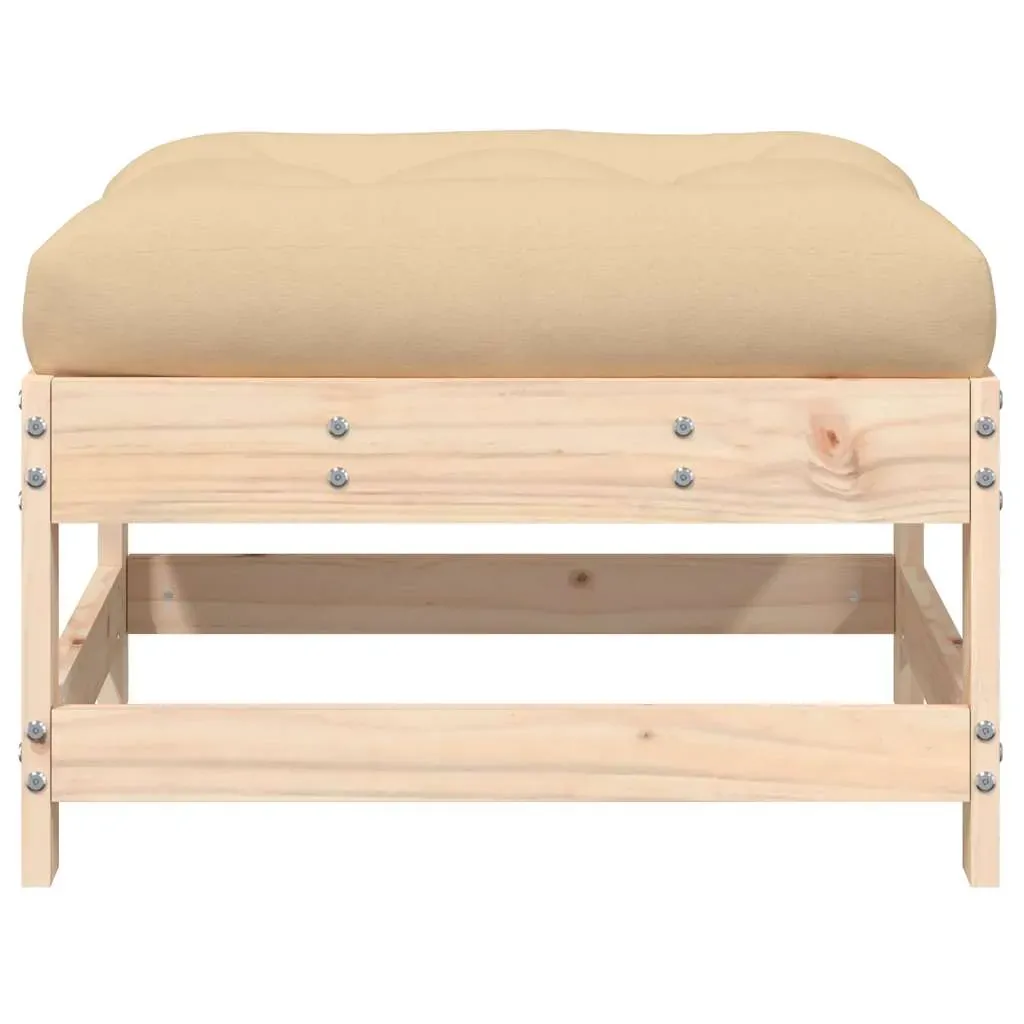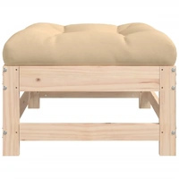 These wooden garden footstools, standing out with the slatted design and soft cushions, will make a great addition to your garden, patio, or terrace for enjoying a cosy time with your family or friends. Solid pine wood: Solid pine wood is a beautiful natural material. Pine wood has a straight grain, and the knots give the material its signature, rustic look.Sturdy and stable frame: The wooden frames make the footstool sturdy and stable for daily outdoor use.Soft cushion: The thickly padded seat cushion of the footrest adds the utmost comfort.Modular design: The outdoor footstool is flexible and easy to move around. You can combine it with other modular segments in the webshop to create your own personal garden lounge set configurations! Good to know:To make sure your outdoor furniture stays beautiful, we recommend protecting it with a waterproof cover.