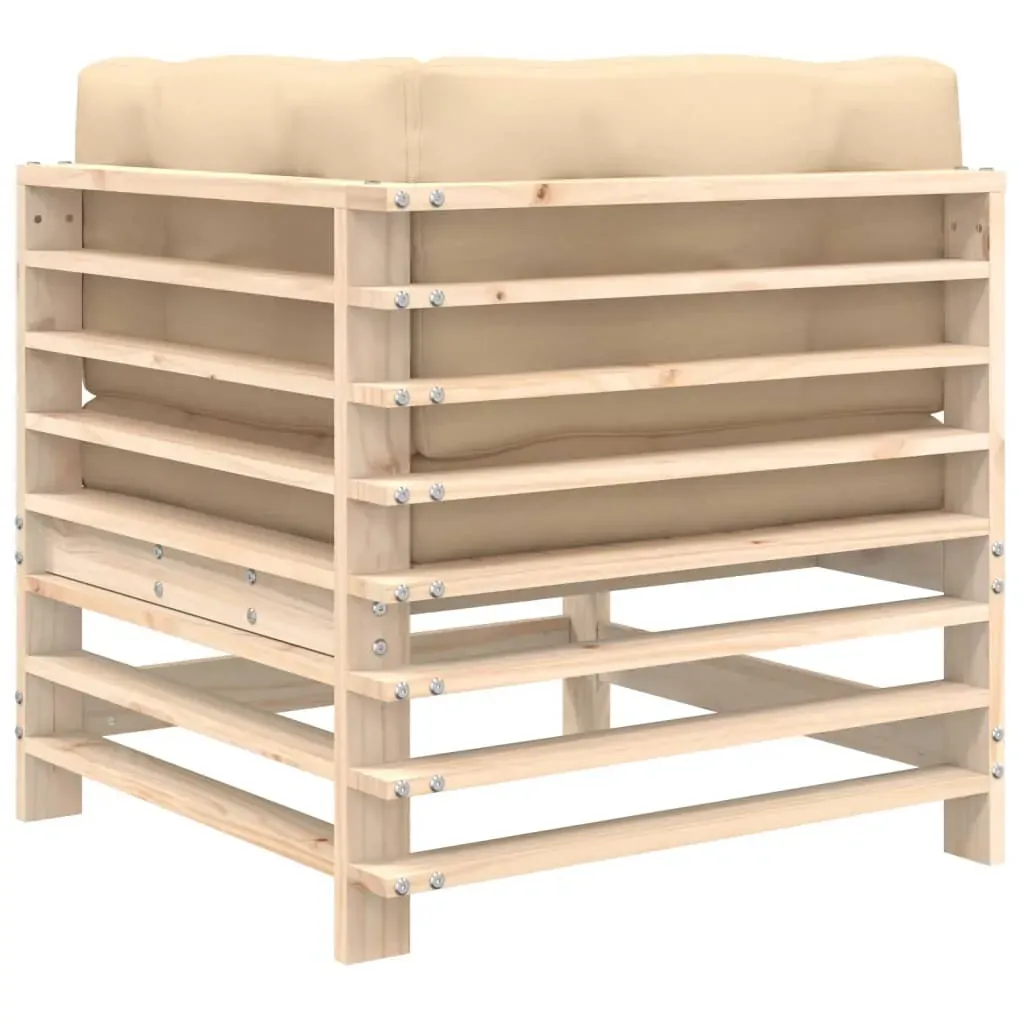 This wooden corner sofa, standing out with the slatted design and soft cushions, will make a great addition to your garden, patio, or terrace for enjoying a cosy time with your family or friends. Solid pine wood: Solid pine wood is a beautiful natural material. Pine wood has a straight grain, and the knots give the material its signature, rustic look.Sturdy and stable frame: The wooden frames make the garden sofa sturdy and stable for daily outdoor use.Comfortable seat experience: The backrest adds extra seating comfort for the outdoor sofa. Also, the thickly padded cushion provides comfort for your sitting time.Modular design: The sectional sofa is flexible and easy to move around. You can combine it with other modular segments in the webshop to create your own personal garden lounge set configurations! Good to know:To make sure your outdoor furniture stays beautiful, we recommend protecting it with a waterproof cover.