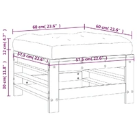 This wooden garden footstool, standing out with the slatted design and soft cushion, will make a great addition to your garden, patio, or terrace for enjoying a cosy time with your family or friends. Solid pine wood: Solid pine wood is a beautiful natural material. Pine wood has a straight grain, and the knots give the material its signature, rustic look.Sturdy and stable frame: The wooden frames make the footstool sturdy and stable for daily outdoor use.Soft cushion: The thickly padded seat cushion of the footrest adds the utmost comfort.Modular design: The outdoor footstool is flexible and easy to move around. You can combine it with other modular segments in the webshop to create your own personal garden lounge set configurations! Good to know:To make sure your outdoor furniture stays beautiful, we recommend protecting it with a waterproof cover.