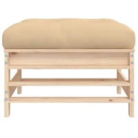 These wooden garden footstools, standing out with the slatted design and soft cushions, will make a great addition to your garden, patio, or terrace for enjoying a cosy time with your family or friends. Solid pine wood: Solid pine wood is a beautiful natural material. Pine wood has a straight grain, and the knots give the material its signature, rustic look.Sturdy and stable frame: The wooden frames make the footstool sturdy and stable for daily outdoor use.Soft cushion: The thickly padded seat cushion of the footrest adds the utmost comfort.Modular design: The outdoor footstool is flexible and easy to move around. You can combine it with other modular segments in the webshop to create your own personal garden lounge set configurations! Good to know:To make sure your outdoor furniture stays beautiful, we recommend protecting it with a waterproof cover.