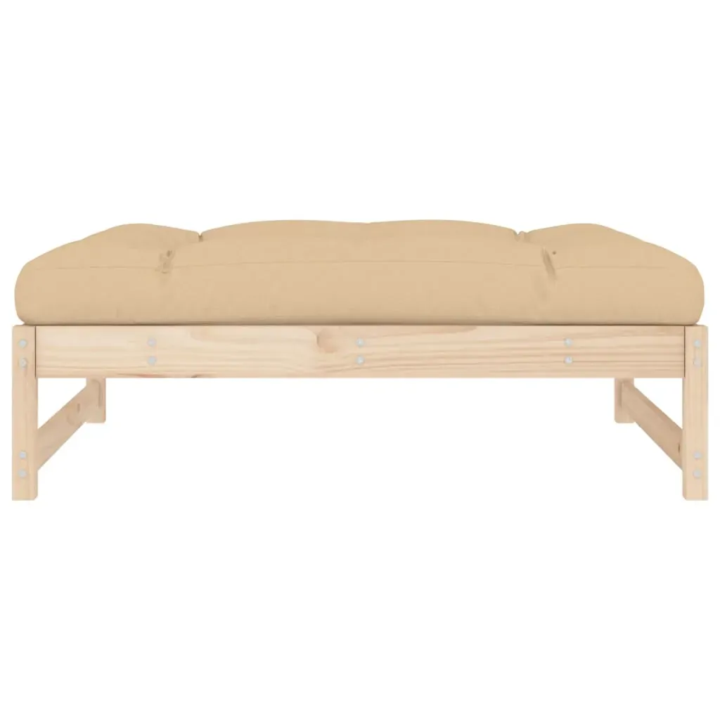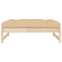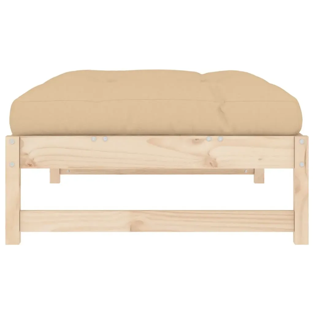This wooden garden footstool, standing out with the slatted design and soft cushion, will make a great addition to your garden, patio, or terrace for enjoying a cosy time with your family or friends. Solid pine wood: Solid pine wood is a beautiful natural material. Pine wood has a straight grain, and the knots give the material its signature, rustic look.Sturdy and stable frame: The wooden frames make the footstool sturdy and stable for daily outdoor use.Soft cushion: The thickly padded seat cushion of the footrest adds the utmost comfort.Modular design: The outdoor footstool is flexible and easy to move around. You can combine it with other modular segments in the webshop to create your own personal garden lounge set configurations! Good to know:To make sure your outdoor furniture stays beautiful, we recommend protecting it with a waterproof cover.