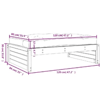 This wooden garden footstool, standing out with the slatted design and soft cushion, will make a great addition to your garden, patio, or terrace for enjoying a cosy time with your family or friends. Solid pine wood: Solid pine wood is a beautiful natural material. Pine wood has a straight grain, and the knots give the material its signature, rustic look.Sturdy and stable frame: The wooden frames make the footstool sturdy and stable for daily outdoor use.Soft cushion: The thickly padded seat cushion of the footrest adds the utmost comfort.Modular design: The outdoor footstool is flexible and easy to move around. You can combine it with other modular segments in the webshop to create your own personal garden lounge set configurations! Good to know:To make sure your outdoor furniture stays beautiful, we recommend protecting it with a waterproof cover.