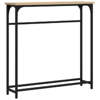 Add a touch of elegance to your entryway, living room, or hallway with this stylish console table. Durable material: The engineered wood is of exceptional quality with smooth surface and also features strength, stability and resistance to moisture. Made of engineered wood, the sofa table is easy to clean.Sturdy tabletop: The sturdy tabletop of the hall table is perfect for placing your framed photos, potted plants, and other decorative items.Adjustable feet: Four adjustable feet with plastic pads keep the hallway table balanced on uneven ground and increase stability.Metal frame: The metal frame adds an industrial style to your interior while ensuring durability and stability. Warning:To prevent it being overturned, this product must be used with the provided wall attachment device.