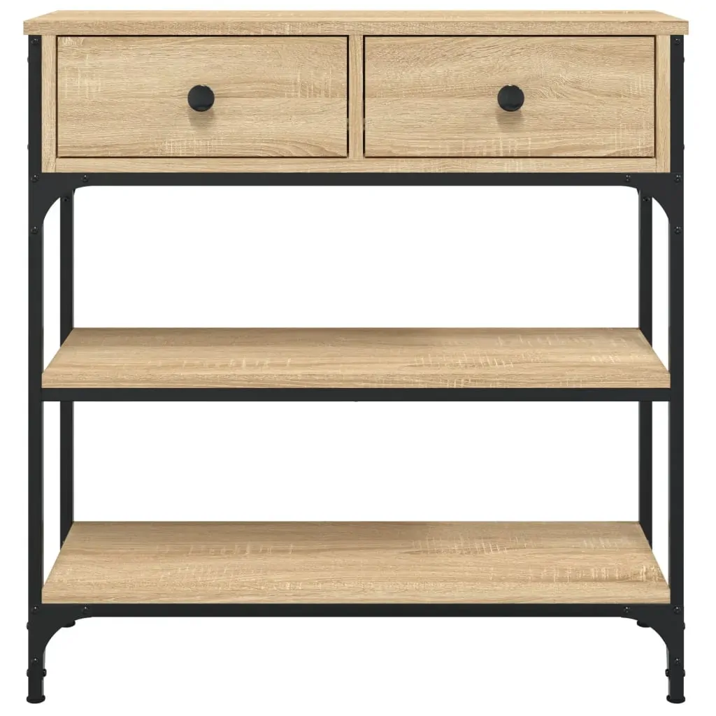 Add a touch of elegance to your entryway, living room, or hallway with this stylish console table. Durable material: The engineered wood is of exceptional quality with smooth surface and also features strength, stability and resistance to moisture. Made of engineered wood, the sofa table is easy to clean.Ample storage space: The hall table offers ample storage space for keeping your magazines, books, decorative items, and other daily essentials well-organised and within reach.Adjustable feet: Four adjustable feet with plastic pads keep the hallway table balanced on uneven ground and increase stability.Metal frame: The metal frame adds an industrial style to your interior while ensuring durability and stability. Warning:To prevent it being overturned, this product must be used with the provided wall attachment device.