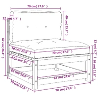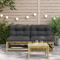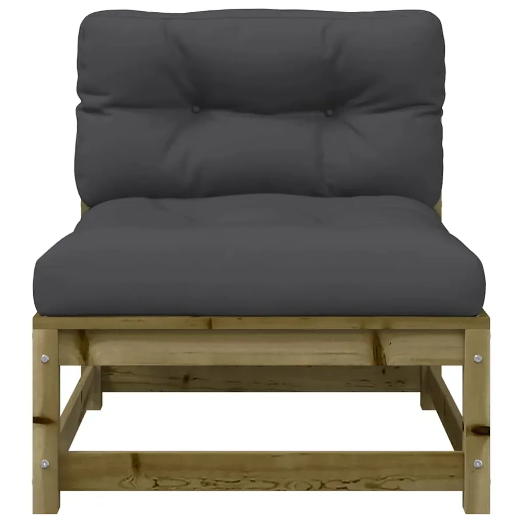 These wooden garden sofas with cushions will make a great addition to your garden, terrace, or patio for chatting with family and friends or just enjoying the weather. Impregnated wood: Solid pine wood is a beautiful natural material. Pine wood has a straight grain, and the knots give the material its signature, rustic look. Impregnation is a preservation process that is carried out by using autoclaves. The pressure-treatment increases resistance to decay and weather.Comfortable seat experience: The backrest and the tickly-padded cushions make the garden sofa chair more comfortable to sit on.Slatted design: The slatted design of the outdoor sofa effectively prevents water from pooling, ensuring that the seat remains dry and free from potential rot.Modular design: This single sofa features a modular design, making it completely flexible and easy to move around to suit any setting. You can combine it with other modular segments available in the drop-down menu to create your own personal garden lounge set configurations! Good to know:To make sure your outdoor furniture stays beautiful, we recommend protecting it with a waterproof cover.