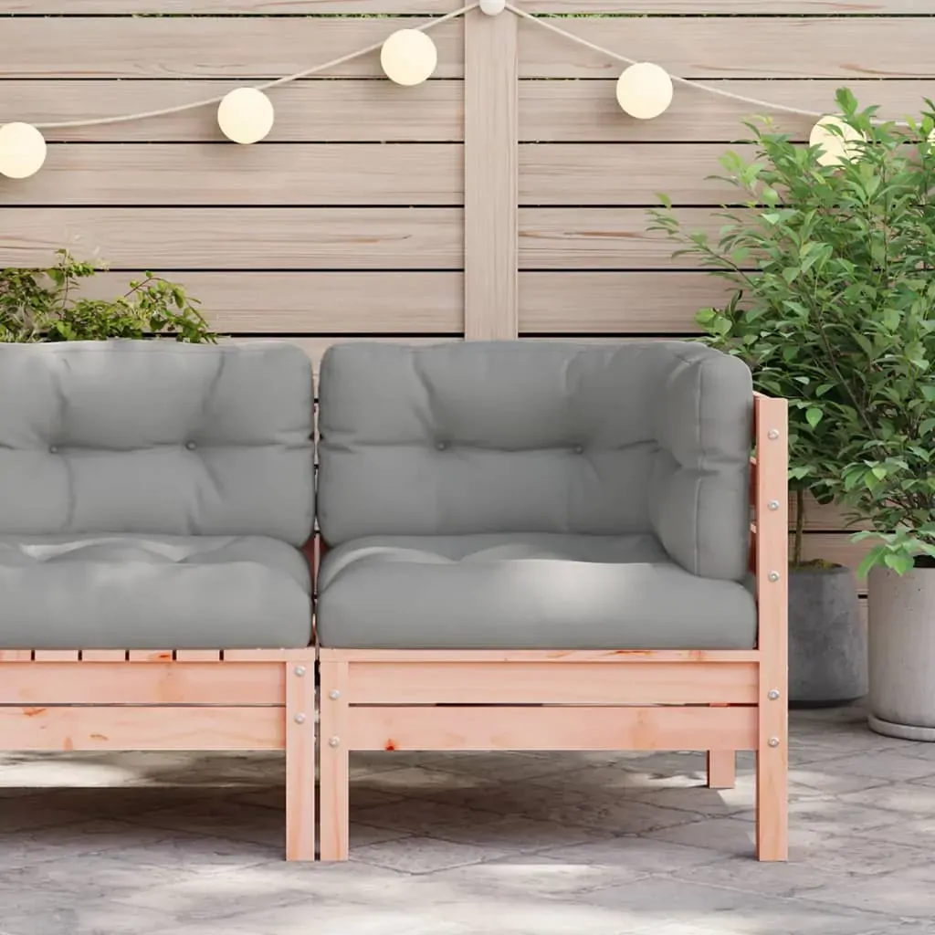 This wooden garden sofa with cushions will make a great addition to your garden, terrace, or patio for chatting with family and friends or just enjoying the weather. Solid douglas wood: Solid douglas wood is a highly durable wood that works well for outdoors. Douglas wood is also strong enough to work with minimum care, even under the influence of the weather. Made of solid douglas wood, this sofa is durable and stable.Comfortable seat experience: The backrest and the tickly-padded cushions make the garden sofa chair more comfortable to sit on.Slatted design: The slatted design of the outdoor sofa effectively prevents water from pooling, ensuring that the seat remains dry and free from potential rot.Modular design: This single sofa features a modular design, making it completely flexible and easy to move around to suit any setting. You can combine it with other modular segments available in the drop-down menu to create your own personal garden lounge set configurations! Good to know:To make sure your outdoor furniture stays beautiful, we recommend protecting it with a waterproof cover.