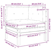 This wooden garden sofa with cushions will make a great addition to your garden, terrace, or patio for chatting with family and friends or just enjoying the weather. Impregnated wood: Solid pine wood is a beautiful natural material. Pine wood has a straight grain, and the knots give the material its signature, rustic look. Impregnation is a preservation process that is carried out by using autoclaves. The pressure-treatment increases resistance to decay and weather.Comfortable seat experience: The backrest and the tickly-padded cushions make the garden sofa chair more comfortable to sit on.Slatted design: The slatted design of the outdoor sofa effectively prevents water from pooling, ensuring that the seat remains dry and free from potential rot.Modular design: This single sofa features a modular design, making it completely flexible and easy to move around to suit any setting. You can combine it with other modular segments available in the drop-down menu to create your own personal garden lounge set configurations! Good to know:To make sure your outdoor furniture stays beautiful, we recommend protecting it with a waterproof cover.