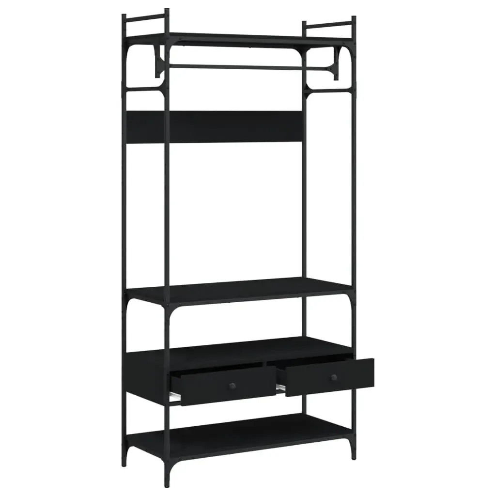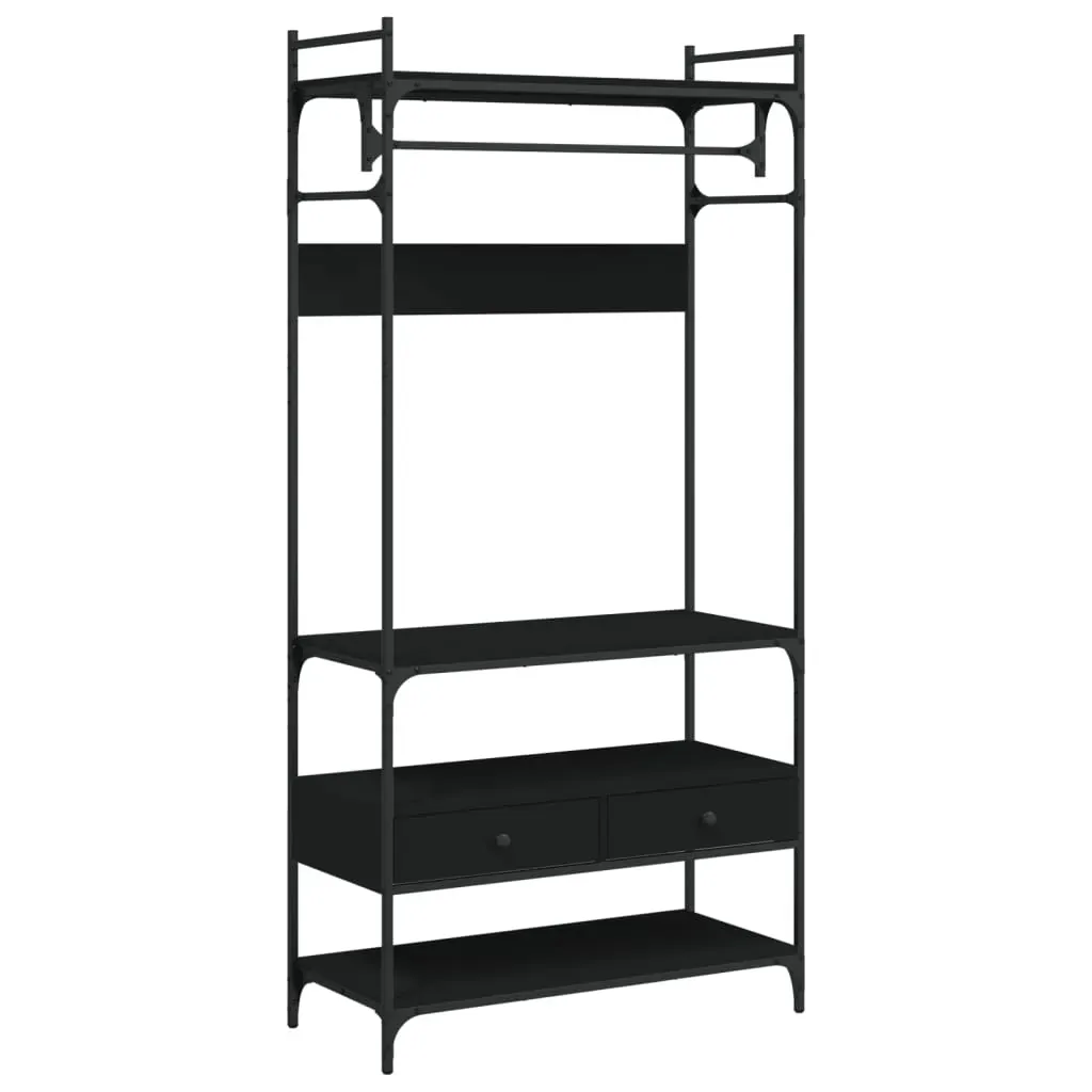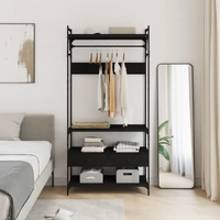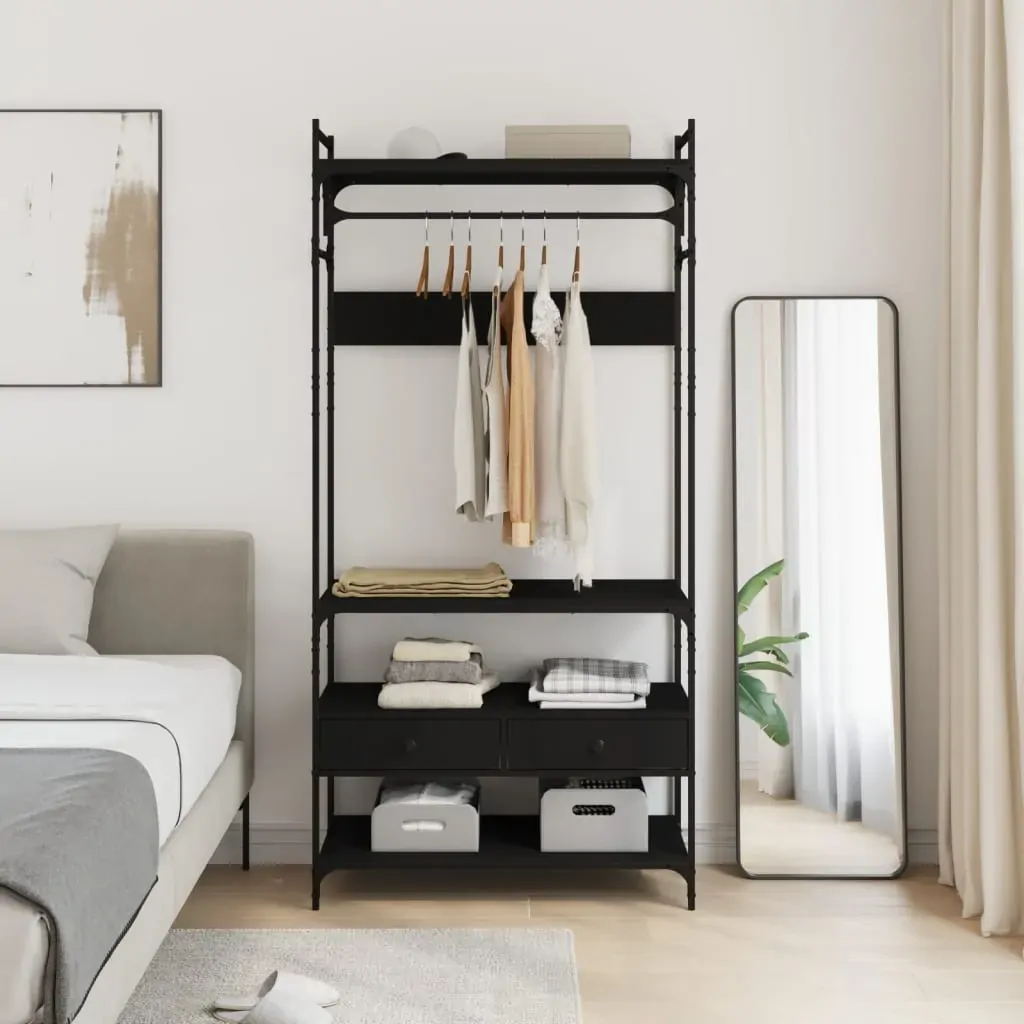 Clean up your closet and easily pick out your outfit with this wardrobe! Durable and sturdy material: The engineered wood is of exceptional quality with smooth surface and also features strength, stability and resistance to moisture. The metal frame of the storage cabinet ensures sturdiness and stability.Ample storage space: The closet organiser has plenty of room for organizing your clothes and bags. The upper shelf is great for boxes and folded clothes, while the lower shelf is perfect for shoes. You can hang your longer outfits on the rob and put your underwear in the drawers.Stylish and compact design: The clean lines and minimalist design make the armoire blend into your room perfectly and is also perfect for small space due to its compact size.Adjustable feet: The adjustable feet with plastic pads keep the bedroom cupboard balanced on uneven ground and increase stability. Warning:To prevent it being overturned, this product must be used with the provided wall attachment device. Good to know:Screws and plugs for inside the wall are not included. We advise to find and use screws and plugs suitable specifically for your walls. If you're not sure, you can consult with a professional. Please read and follow each step of the instructions.