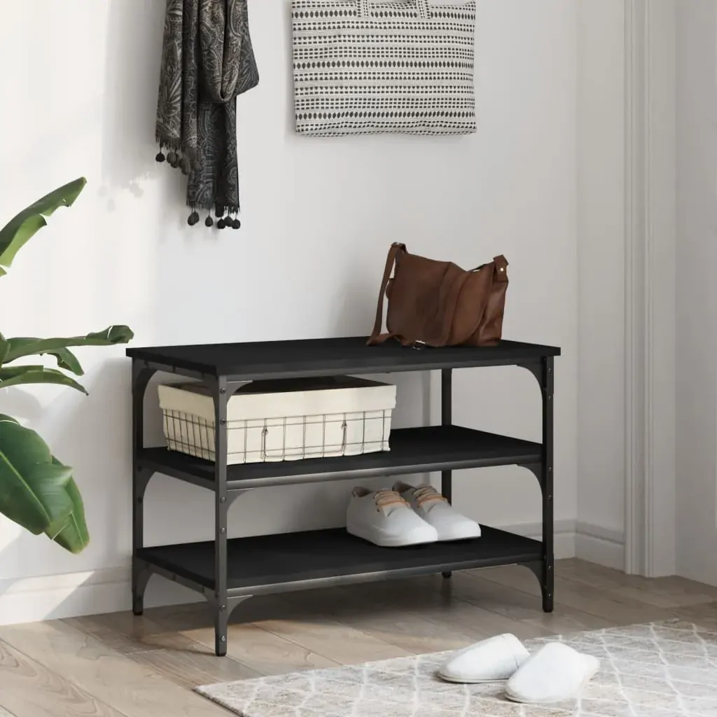 Keep your shoes well-organised and always at hand with this shoe bench! Sturdy construction: The engineered wood is of exceptional quality with a smooth surface and features strength, stability and resistance to moisture. The metal frame also ensures sturdiness and stability for the bench.Ample storage space: The hallway bench with 3-tier storage shelves offers ample storage space to keep your shoes well-organised and offers a clean and clutter-free living area.Adjustable feet: The adjustable feet with plastic pads keep the hallway bench seat balanced on uneven ground and increase stability.Versatile use: The bench is perfect to use as a shoe bench in the hallway or a storage bench in the living room.