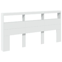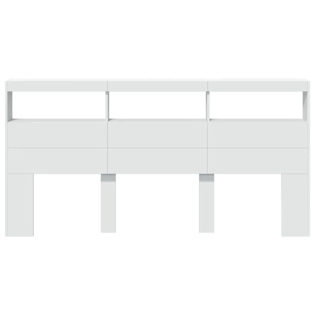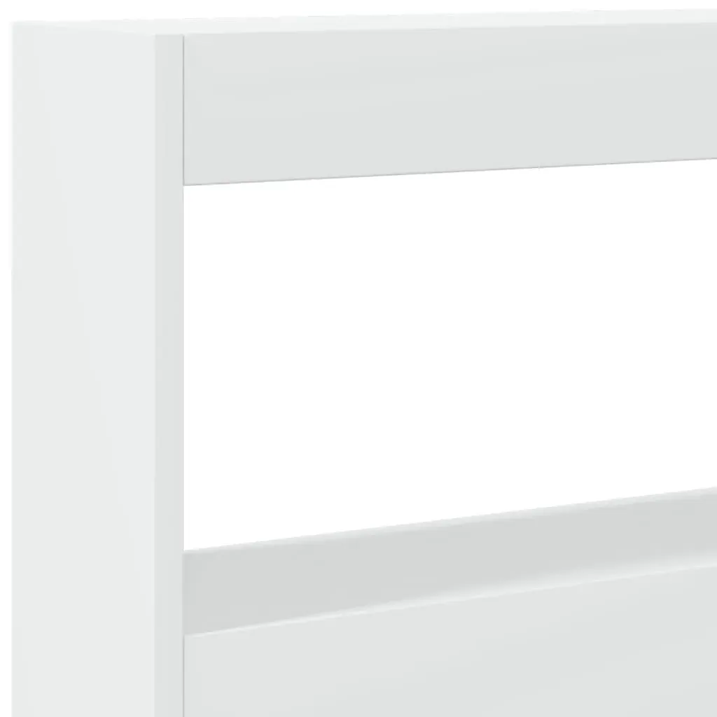 This headboard cabinet with LED, featuring a stylish design, gives your bed frame a stunning modern touch and is perfectly suitable in any bedroom. Durable material: The engineered wood is of exceptional quality with smooth surface and also features strength, stability and resistance to moisture.RGB LED lights: The bed headboard is equipped with vibrant RGB LED lights. With various customisable menus, you can effortlessly change the colour of the lights and even set them to adjust automatically. These LED lights not only enhance the contemporary look of the bed header but also add to its trendy appeal.Ample storage space: Featuring compartments and a sturdy top, the bed headboard cabinet is perfect for displaying your books, decorative items, picture frames and alarm clocks.Excellent support: The headboard for bed provides you with excellent back support when you sit up in bed to read or watch TV. Good to know:The delivery includes LED headboard only. The bed frame and mattress are not included. You can check our shop for the matching frames and mattresses.The product has a USB connector that requires a certified 5V USB power source (not included). Warning:To prevent it from tipping over, this product must be used with the provided wall attachment device.