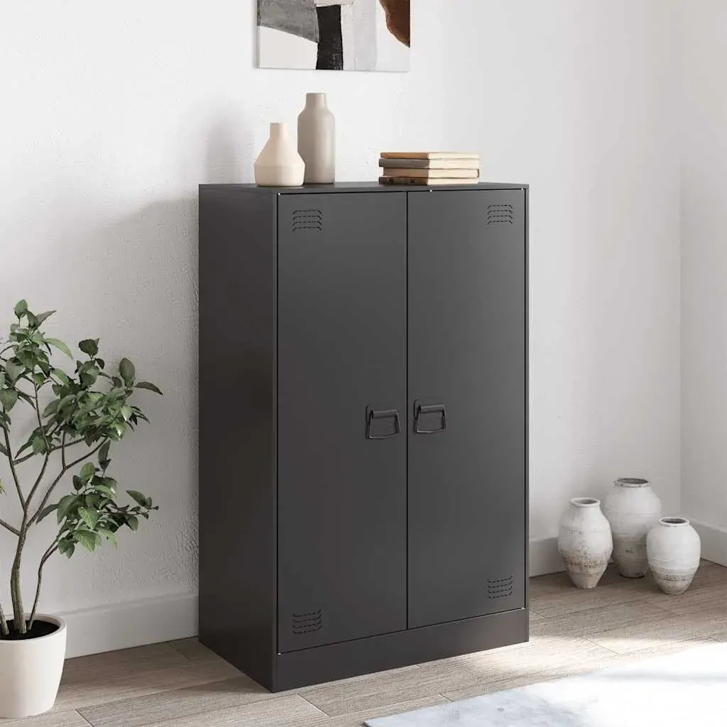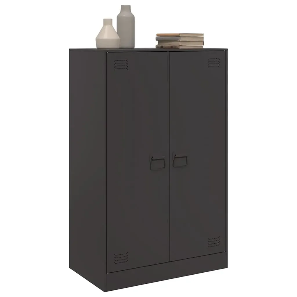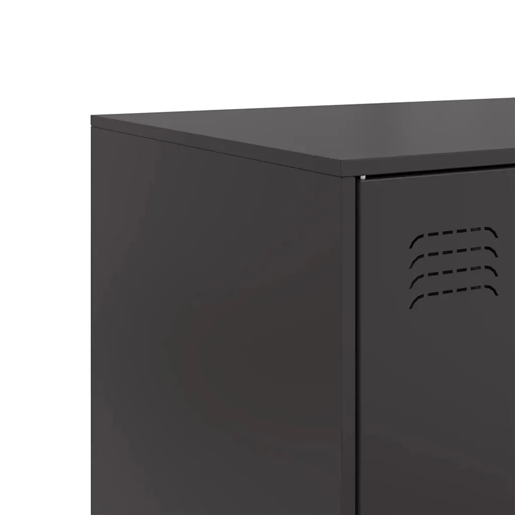 This sturdy sideboard is designed to be a focal point of your room with a trendy yet practical design. Stable material: The sideboard's frame is made of cold-rolled steel. Cold-rolled steel is a kind of low-carbon steel produced by a "cold rolling" method and processed at near normal room temperatures. Cold-rolled steel has a smoother surface, greater strength, and higher precision.Ample storage space: This sideboard offers handy storage space for keeping your magazines, books, remote controls and other small items well-organised and within reach.Easy to maintain: The table is easy to clean with a damp cloth and requires less maintenance.Practical handle: The sideboard comes with 2 handles that make it easy to open and close the cabinet while also adding to extra beauty. Warning:To prevent it from tipping over, this product must be used with the wall attachment device (not provided).