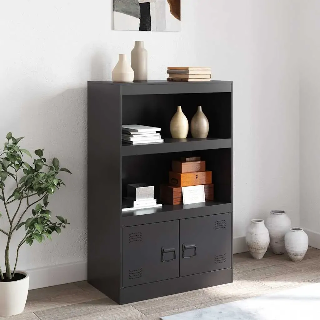 This sturdy sideboard is designed to be a focal point of your room with a trendy yet practical design. Stable material: The sideboard's frame is made of cold-rolled steel. Cold-rolled steel is a kind of low-carbon steel produced by a "cold rolling" method and processed at near normal room temperatures. Cold-rolled steel has a smoother surface, greater strength, and higher precision.Ample storage space: This sideboard offers handy storage space for keeping your magazines, books, remote controls and other small items well-organised and within reach.Easy to maintain: The table is easy to clean with a damp cloth and requires less maintenance.Practical handle: The sideboard comes with 2 handles that make it easy to open and close the cabinet while also adding to extra beauty. Warning:To prevent it from tipping over, this product must be used with the wall attachment device (not provided).