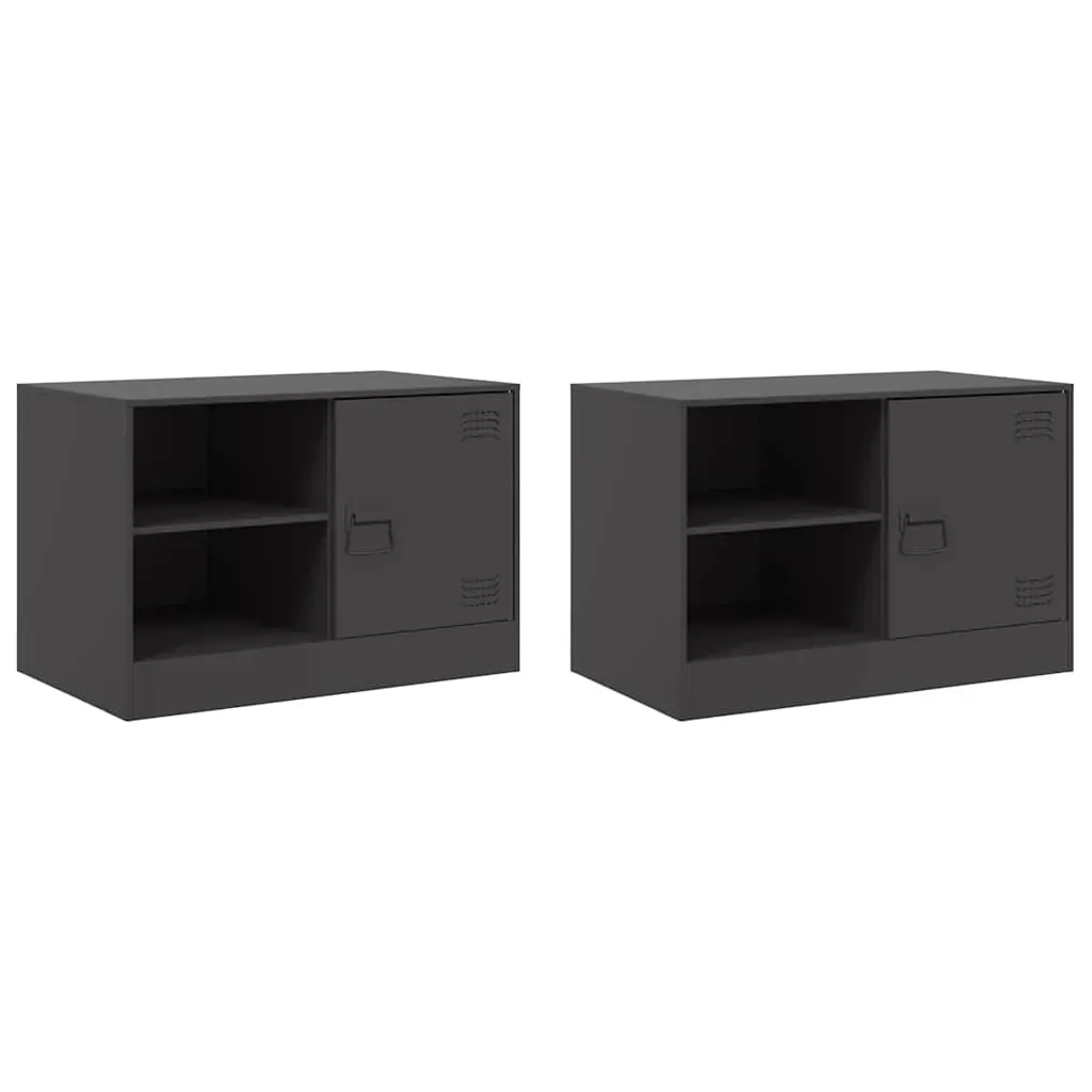These sturdy TV cabinets are designed to be a focal point of your room with a trendy yet practical design. Stable material: The TV cabinet's frame is made of cold-rolled steel. Cold-rolled steel is a kind of low-carbon steel produced by a "cold rolling" method and processed at near normal room temperatures. Cold-rolled steel has a smoother surface, greater strength, and higher precision.Ample storage space: This cabinet offers handy storage space for keeping your magazines, books, remote controls and other small items well-organised and within reach.Easy to maintain: The table is easy to clean with a damp cloth and requires less maintenance.Practical handle: The TV cabinet comes with a handle that makes it easy to open and close the cabinet while also adding to extra beauty.