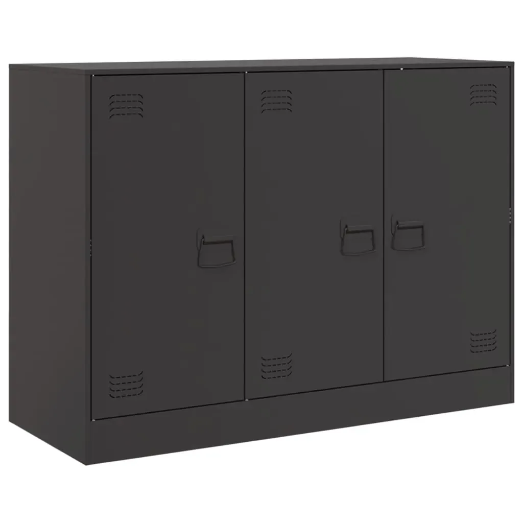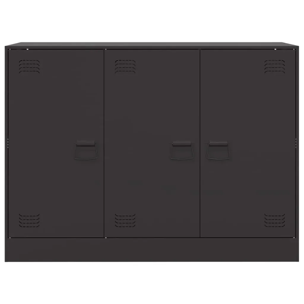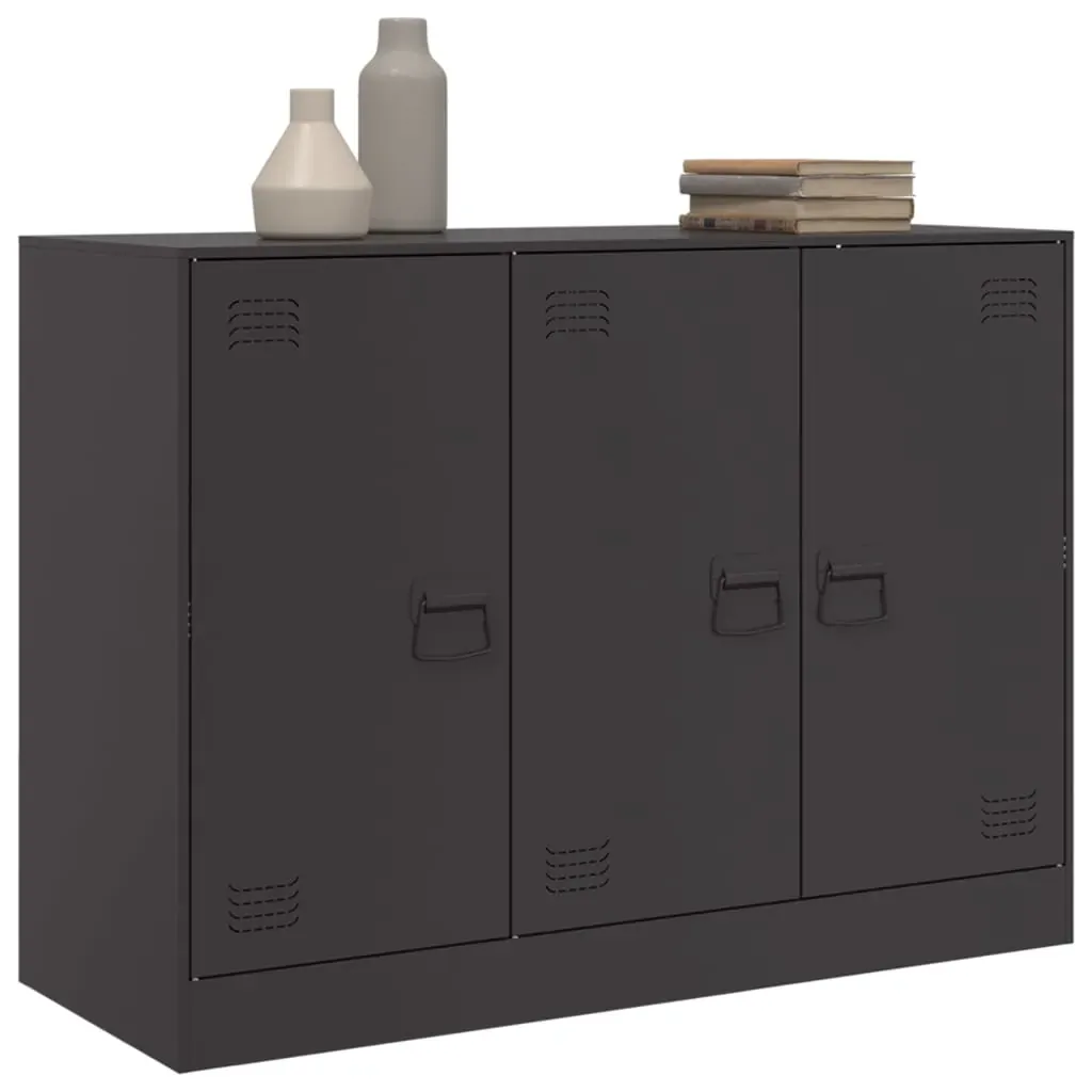 This sturdy sideboard is designed to be a focal point of your room with a trendy yet practical design. Stable material: The sideboard's frame is made of cold-rolled steel. Cold-rolled steel is a kind of low-carbon steel produced by a "cold rolling" method and processed at near normal room temperatures. Cold-rolled steel has a smoother surface, greater strength, and higher precision.Ample storage space: This sideboard offers handy storage space for keeping your magazines, books, remote controls and other small items well-organised and within reach.Easy to maintain: The table is easy to clean with a damp cloth and requires less maintenance.Practical handle: The sideboard comes with 3 handles that make it easy to open and close the cabinet while also adding to extra beauty. Warning:To prevent it from tipping over, this product must be used with the wall attachment device (not provided).