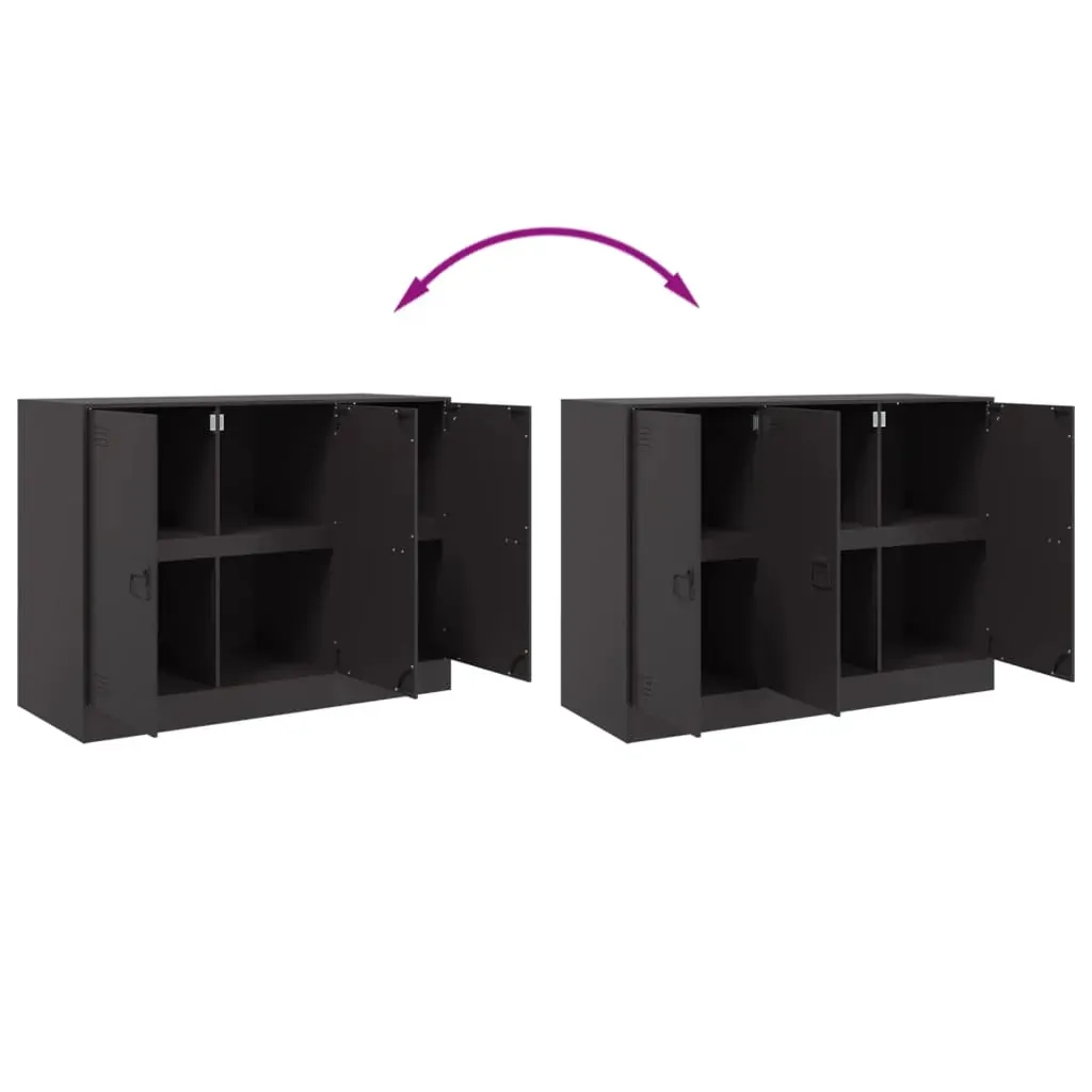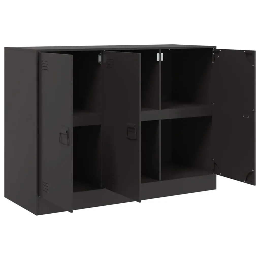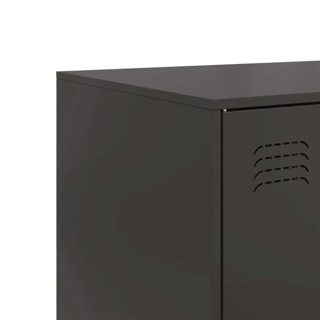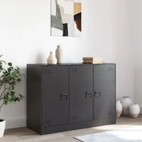 This sturdy sideboard is designed to be a focal point of your room with a trendy yet practical design. Stable material: The sideboard's frame is made of cold-rolled steel. Cold-rolled steel is a kind of low-carbon steel produced by a "cold rolling" method and processed at near normal room temperatures. Cold-rolled steel has a smoother surface, greater strength, and higher precision.Ample storage space: This sideboard offers handy storage space for keeping your magazines, books, remote controls and other small items well-organised and within reach.Easy to maintain: The table is easy to clean with a damp cloth and requires less maintenance.Practical handle: The sideboard comes with 3 handles that make it easy to open and close the cabinet while also adding to extra beauty. Warning:To prevent it from tipping over, this product must be used with the wall attachment device (not provided).