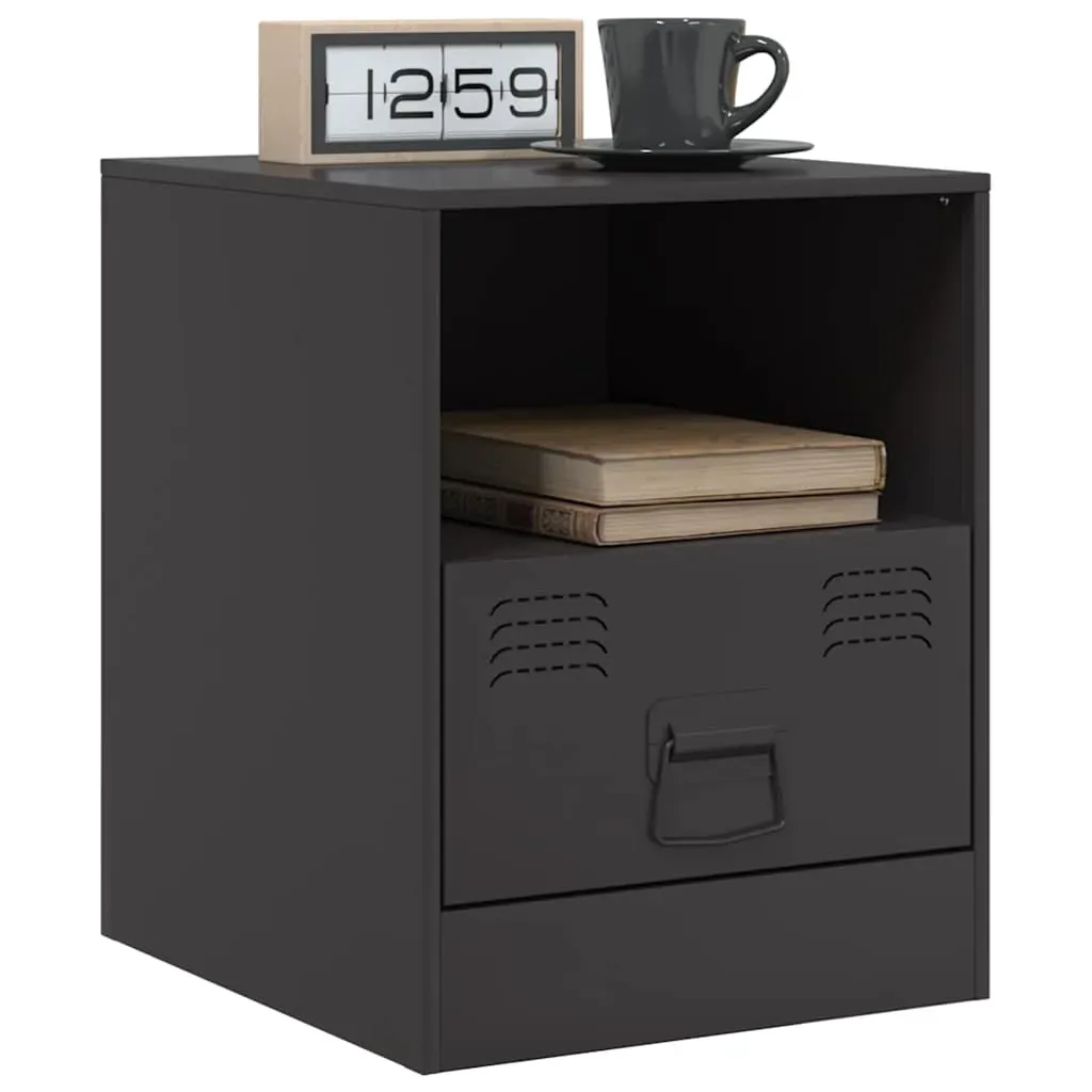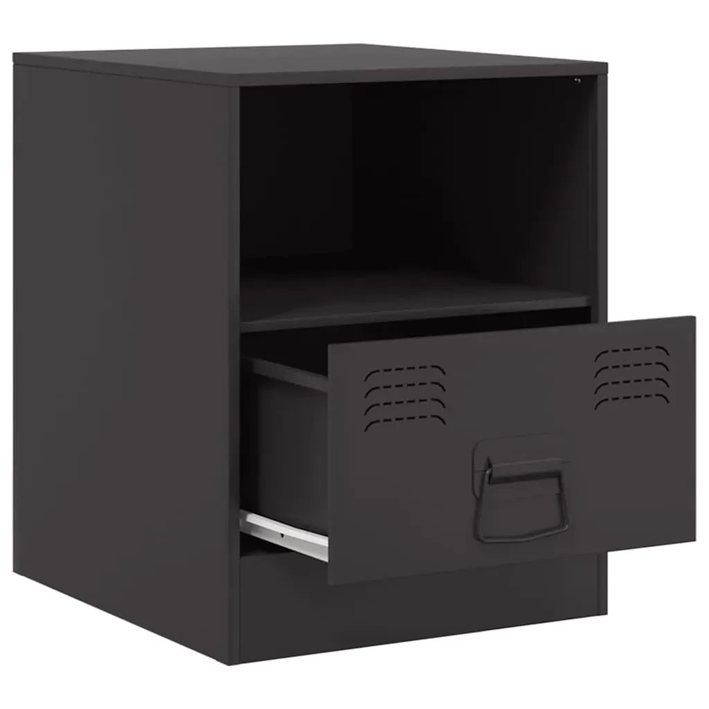 These bedside cabinets with a stylish design make a timeless addition to your interior decor. Stable material: The bedside cabinet's frame is made of cold-rolled steel. Cold-rolled steel is a kind of low-carbon steel produced by a "cold rolling" method and processed at near normal room temperatures. Cold-rolled steel has a smoother surface, greater strength, and higher precision.Ample storage space: This cabinet offers handy storage space for keeping your magazines, books, remote controls and other small items well-organised and within reach.Easy to maintain: The table is easy to clean with a damp cloth and requires less maintenance.Practical handle: The bed cabinet comes with a handle that makes it easy to open and close the cabinet while also adding to extra beauty.