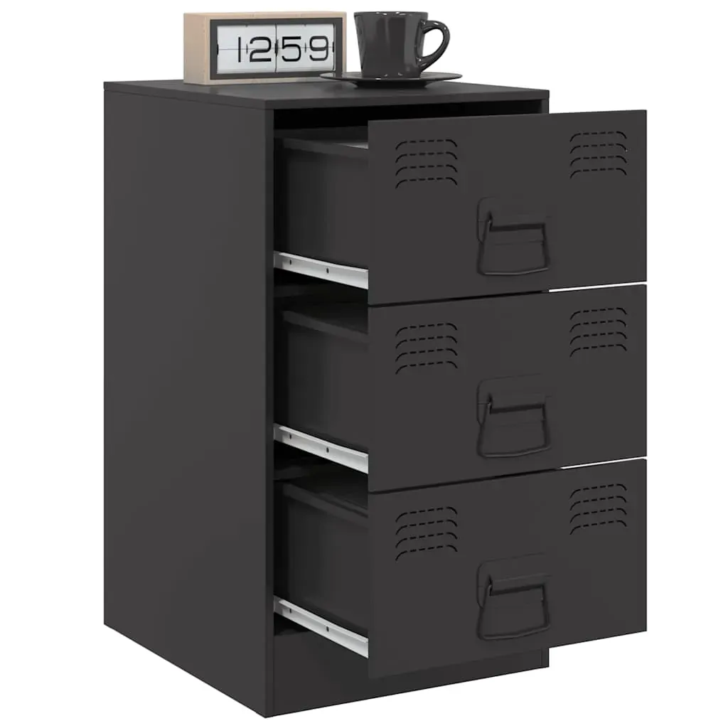 These bedside cabinets with a stylish design make a timeless addition to your interior decor. Stable material: The bedside cabinet's frame is made of cold-rolled steel. Cold-rolled steel is a kind of low-carbon steel produced by a "cold rolling" method and processed at near normal room temperatures. Cold-rolled steel has a smoother surface, greater strength, and higher precision.Ample storage space: This cabinet offers handy storage space for keeping your magazines, books, remote controls and other small items well-organised and within reach.Easy to maintain: The table is easy to clean with a damp cloth and requires less maintenance.Practical handle: The bed cabinet comes with 3 handles that make it easy to open and close the cabinet while also adding to extra beauty. Warning:To prevent it from tipping over, this product must be used with the wall attachment device (not provided).