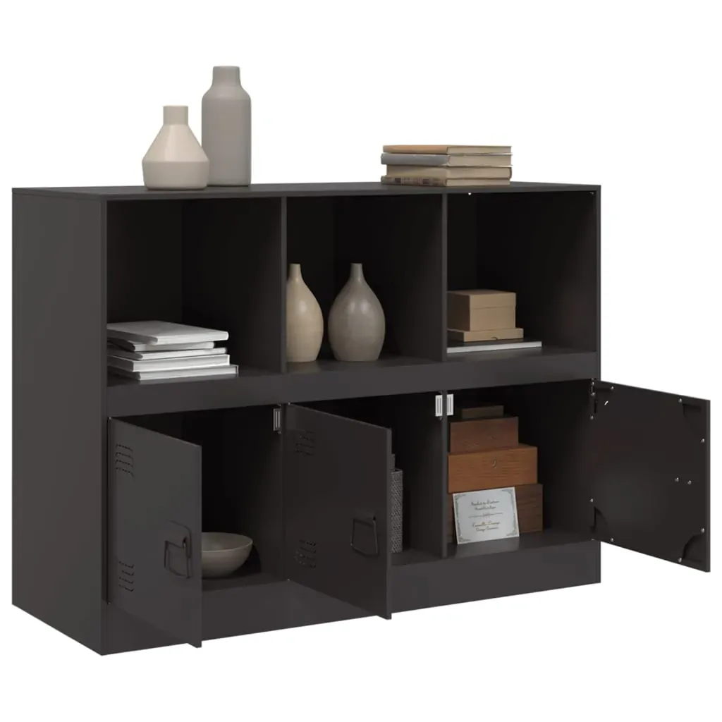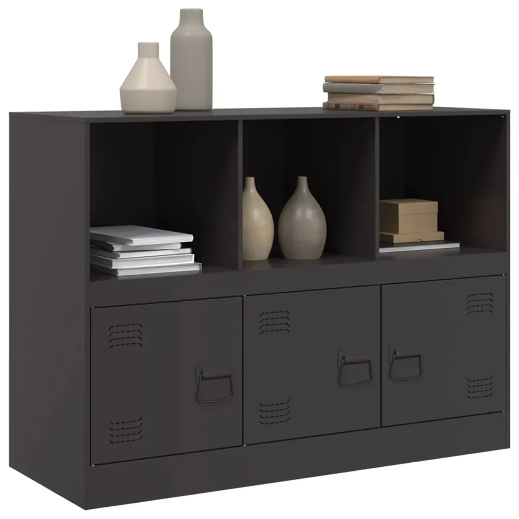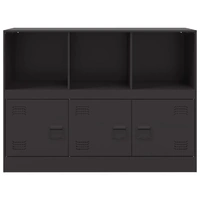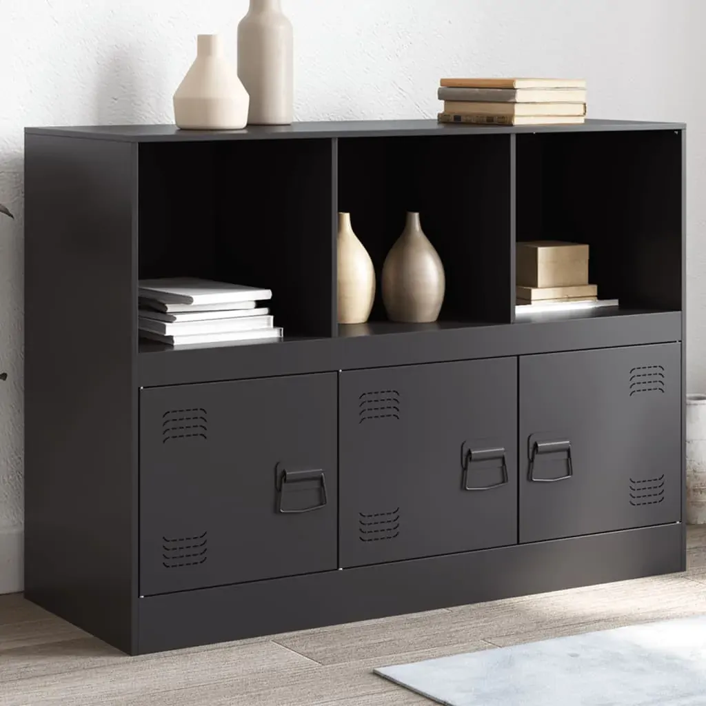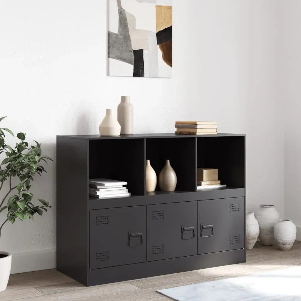 This sturdy sideboard is designed to be a focal point of your room with a trendy yet practical design. Stable material: The sideboard's frame is made of cold-rolled steel. Cold-rolled steel is a kind of low-carbon steel produced by a "cold rolling" method and processed at near normal room temperatures. Cold-rolled steel has a smoother surface, greater strength, and higher precision. Ample storage space: This sideboard offers handy storage space for keeping your magazines, books, remote controls and other small items well-organised and within reach.Easy to maintain: The table is easy to clean with a damp cloth and requires less maintenance.Practical handle: The sideboard comes with 3 handles that make it easy to open and close the cabinet while also adding to extra beauty. Warning:To prevent it from tipping over, this product must be used with the wall attachment device (not provided).