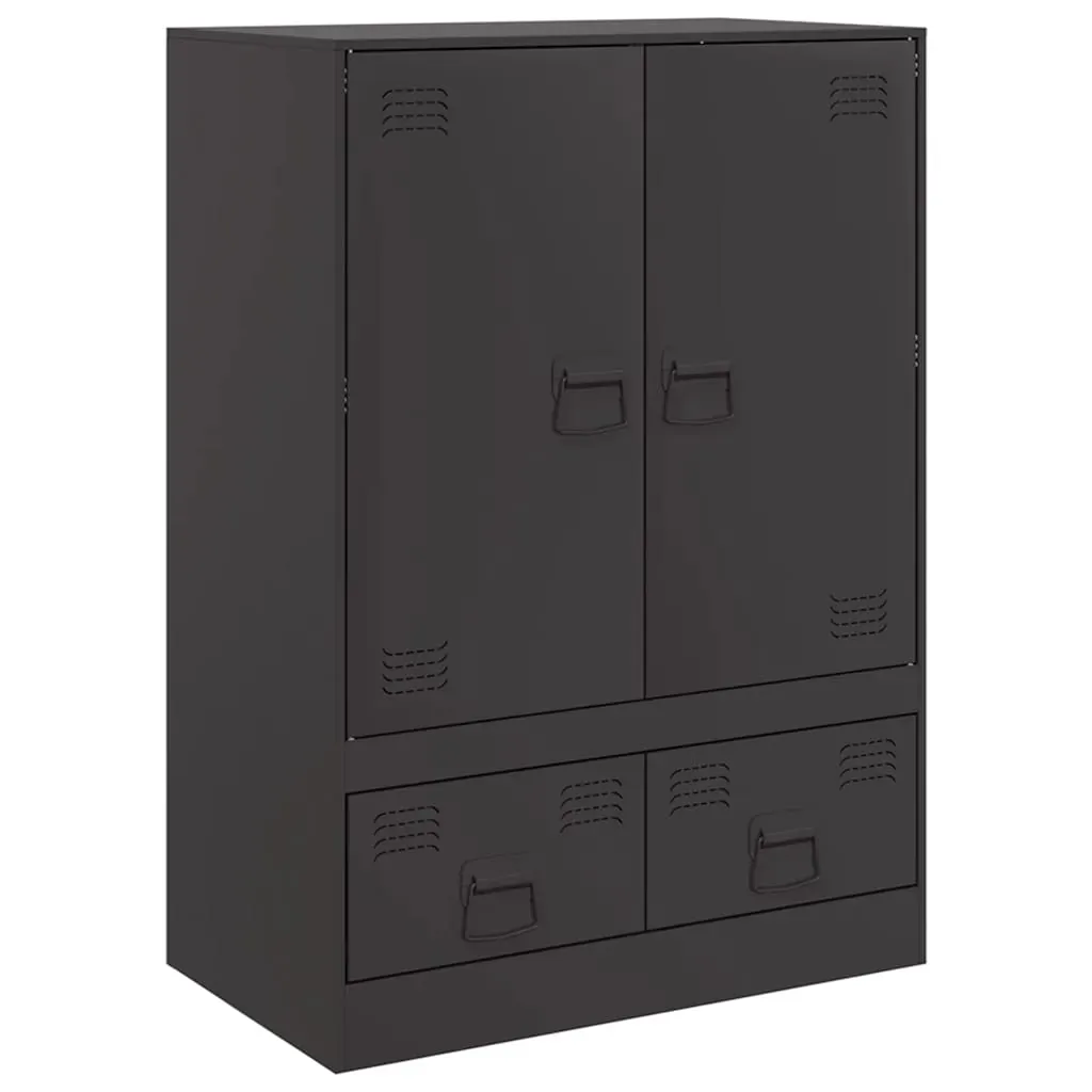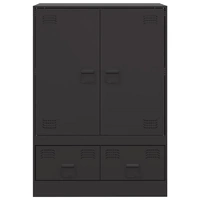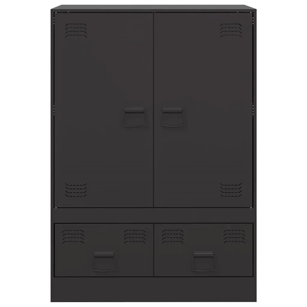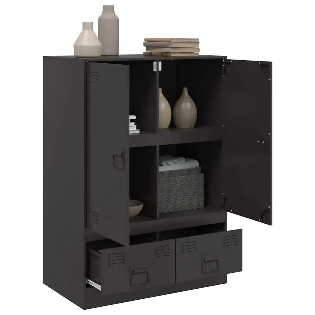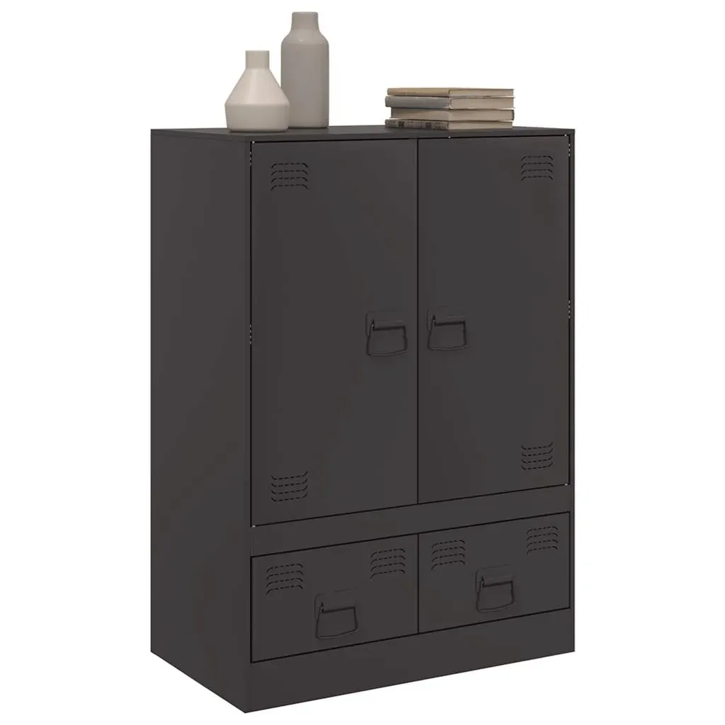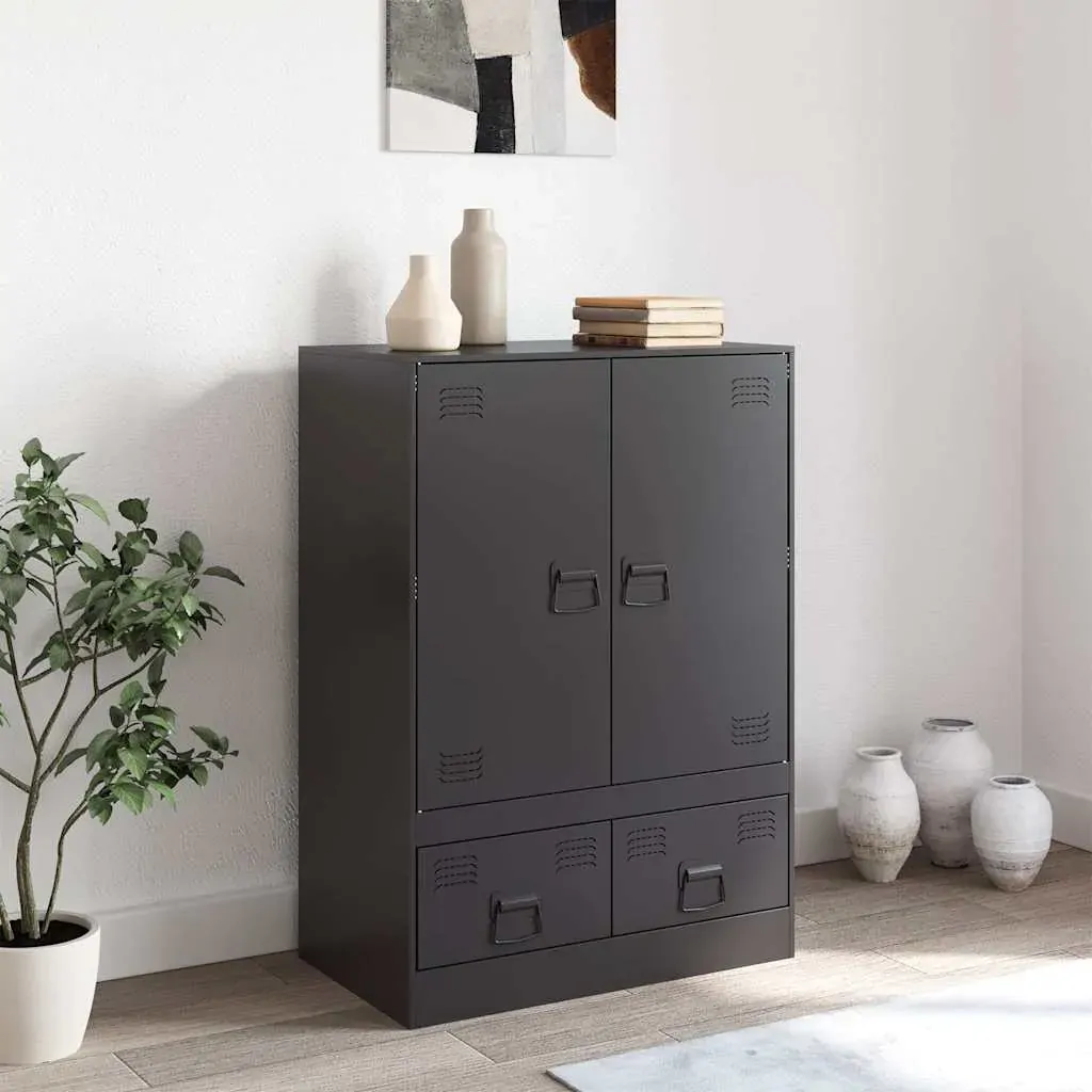 Are you hunting for a stylish highboard? This highboard adds an elegant charm to your existing interior! Stable material: The sideboard's frame is made of cold-rolled steel. Cold-rolled steel is a kind of low-carbon steel produced by a "cold rolling" method and processed at near normal room temperatures. Cold-rolled steel has a smoother surface, greater strength, and higher precision.Ample storage space: This sideboard offers handy storage space for keeping your magazines, books, remote controls and other small items well-organised and within reach.Easy to maintain: The cabinet is easy to clean with a damp cloth and requires less maintenance.Practical handle: The sideboard comes with 4 handles that make it easy to open and close the cabinet while also adding to extra beauty. Warning:To prevent it from tipping over, this product must be used with the wall attachment device (not provided).