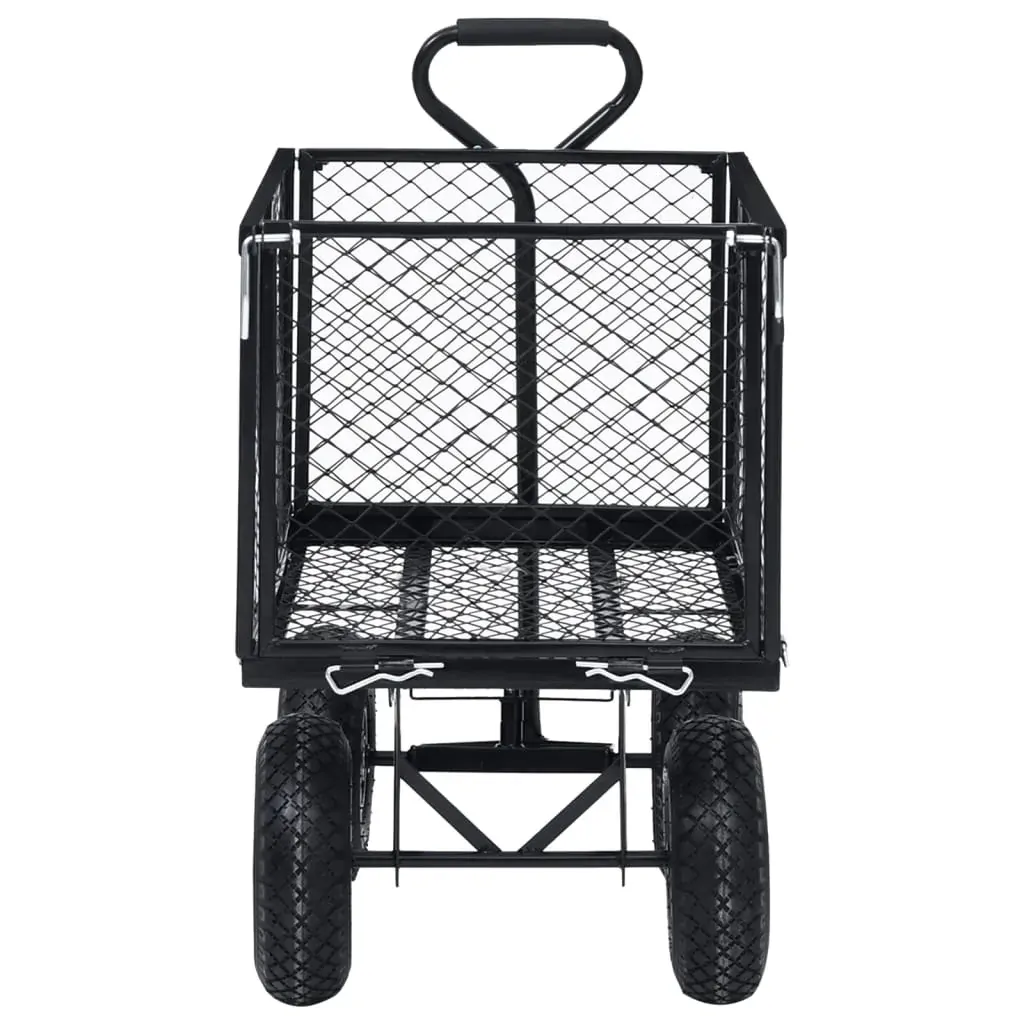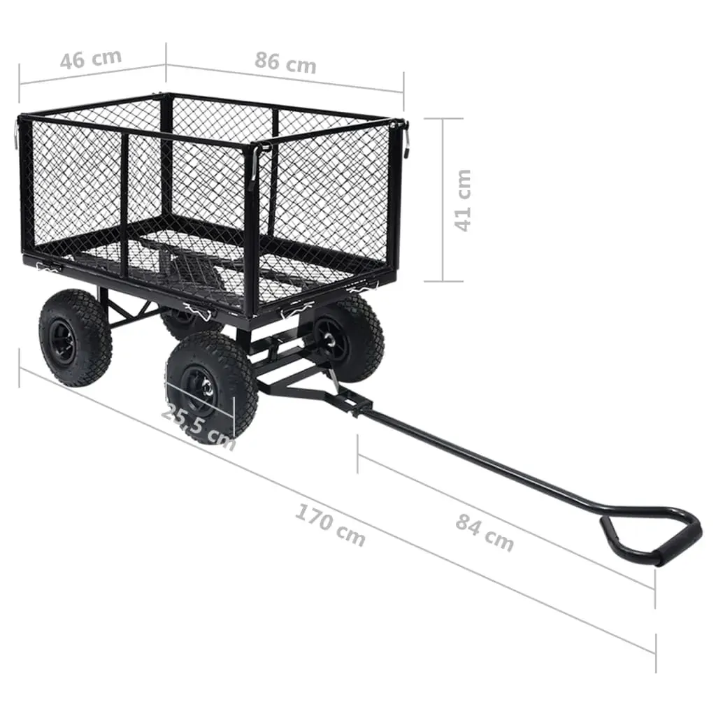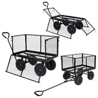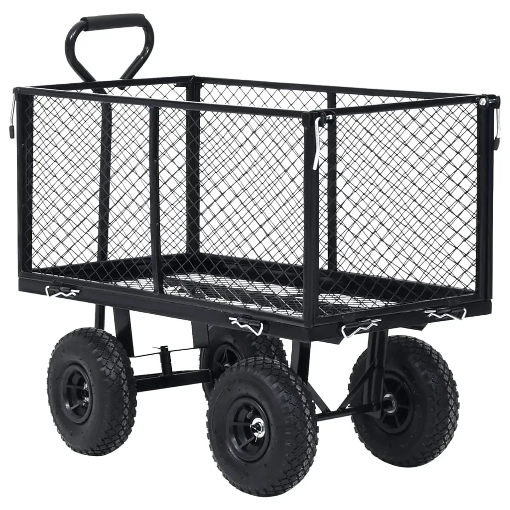Featuring a durable and robust steel construction, this hand trolley is ideal for an array of gardening tasks. Made of heavy-duty steel, this garden cart is exceedingly stable and durable. With a maximum load capacity of 350 kg, the hand truck can easily transport flowers, leaves, logs and other stuffs. The sides panels can be opened with quick-release fasteners for easy loading and unloading. Additionally, the large heavy-duty pneumatic wheels allow you to effortless pull the trolley on uneven terrain surfaces. Padded handle ensures a firm grip as well. Please note that it is not suitable for transporting children. The garden cart liner is not included in the delivery, but can be bought in our shop.