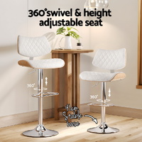 Discover the Artiss Quilla Bar Stools, where comfort meets sophistication. These stools feature a padded seat upholstered in premium PU leather, complemented by a curved bentwood seat with a striking wood grain finish. Enjoy full mobility with a 360-degree swivel seat and adjustable height courtesy of an SGS-tested gas lift lever, all while protecting your floors with a discreet floor protector under the base.