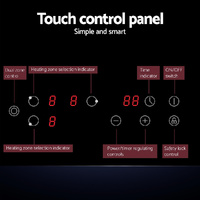For amazing, hassle-free cooking in your new or existing kitchen, the Devanti 60cm Ceramic Cooktop is just what you need. With its sleek high-grade black ceramic glass plate, the cooktop suits many modern and contemporary décor styles and will fit easily into any kitchen. The cooktop has chef-friendly features such as 4 high-wattage cooking zones across 3 hobs, a simple and smart touch control panel, overheat protection and efficient heat dissipation, and a 99-minute timer. It features 4 cooking zones with 9 power levels to choose from to prepare that perfect dish. The residual heat indicator lets you know when it is safe to touch the cooktop after turning the hot plates off, and a child safety lock keeps your family safe from accidents. Powerful and yet integrally safe, the cooktop promises many moments of hassle-free delicious cooking with the right blend of sophistication and class for your kitchen.