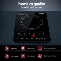 Whether it is for your existing or new home, our Devanti Ceramic Cooktop is just the thing you need for easy, no-fuss cooking. Loaded with an extensive list of chef-friendly features such as 5 cooking modes, touch controls, a child lock, 24-hour preset/timer functions, overheat protection and efficient heat dissipation, this cooktop is also incredibly sleek with its high-grade black ceramic glass plate. It features 10 levels of power adjustment to choose from to prepare that perfect dish. Better still, the cooktop will turn itself off when temperatures get excessively high, or you simply forget to turn it off after your cooking. Powerful and yet integrally safe, the cooktop promises many moments of hassle-free delicious cooking with the right blend of sophistication and class for your kitchen.