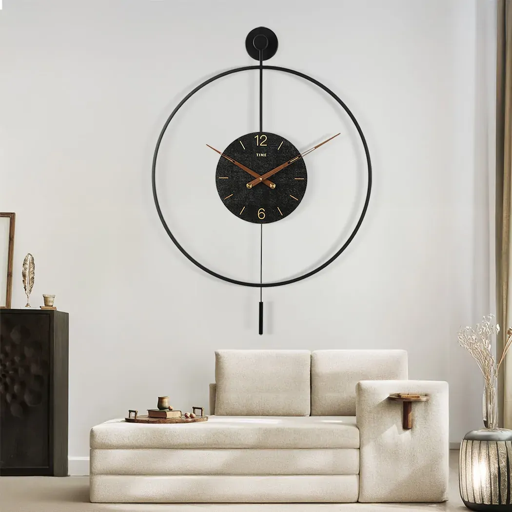 Crafted with a durable metal frame and finished in a beautiful walnut wood tone, this clock blends seamlessly with a variety of decor styles— from sleek, contemporary spaces to more traditional interiors. Its clean, minimalist design and large, easy-to-read numbers make it a standout feature on any wall.