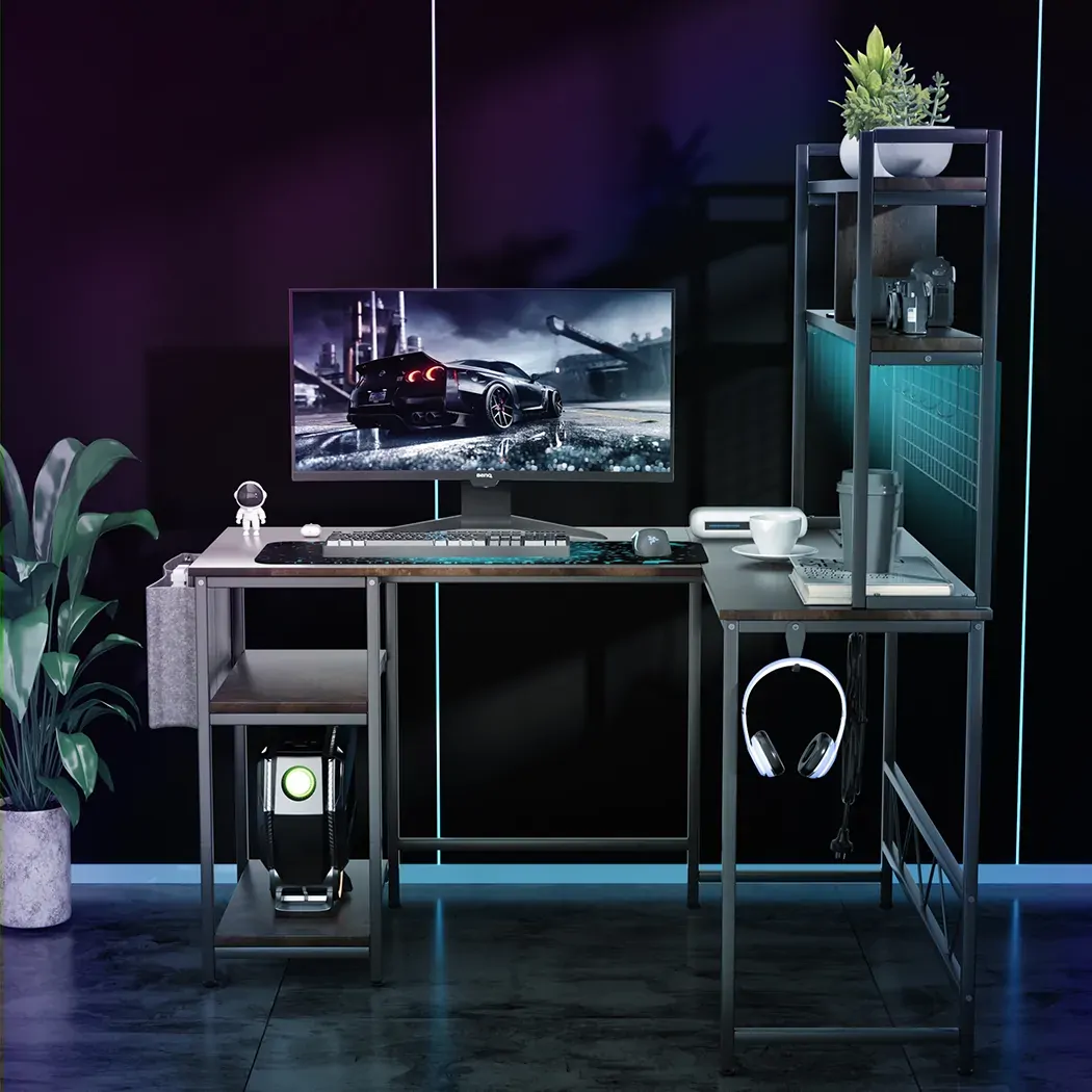 The L-shaped configuration of this gaming desk provides an expansive surface area for your gaming setup, allowing you to comfortably accommodate multiple monitors, gaming peripherals, and accessories. The ergonomic design promotes optimal posture and comfort during extended gaming sessions, ensuring that you stay focused and immersed in the action.
