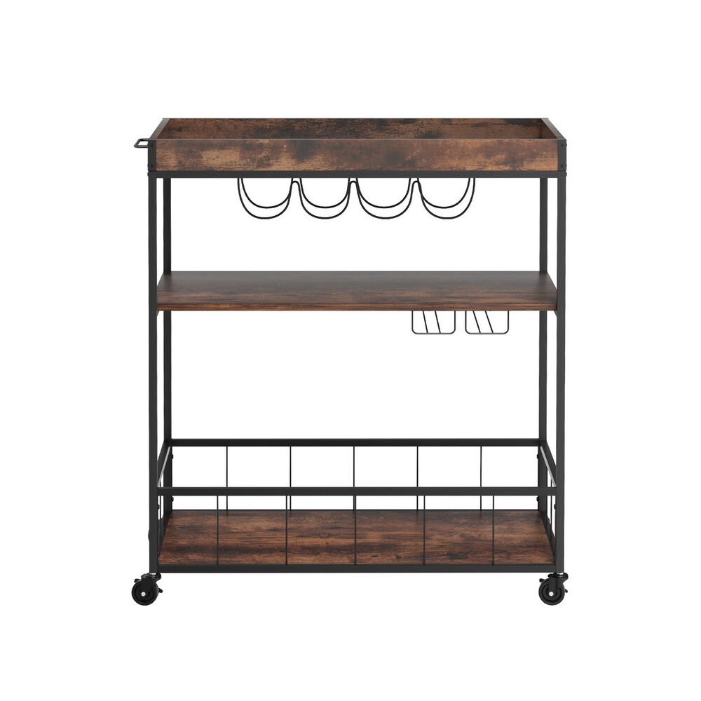Versatile functionality as a kitchen island, storage cart, or coffee bar