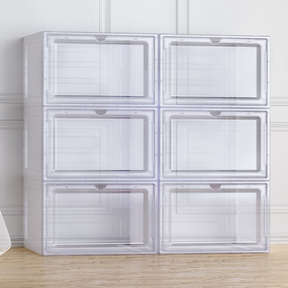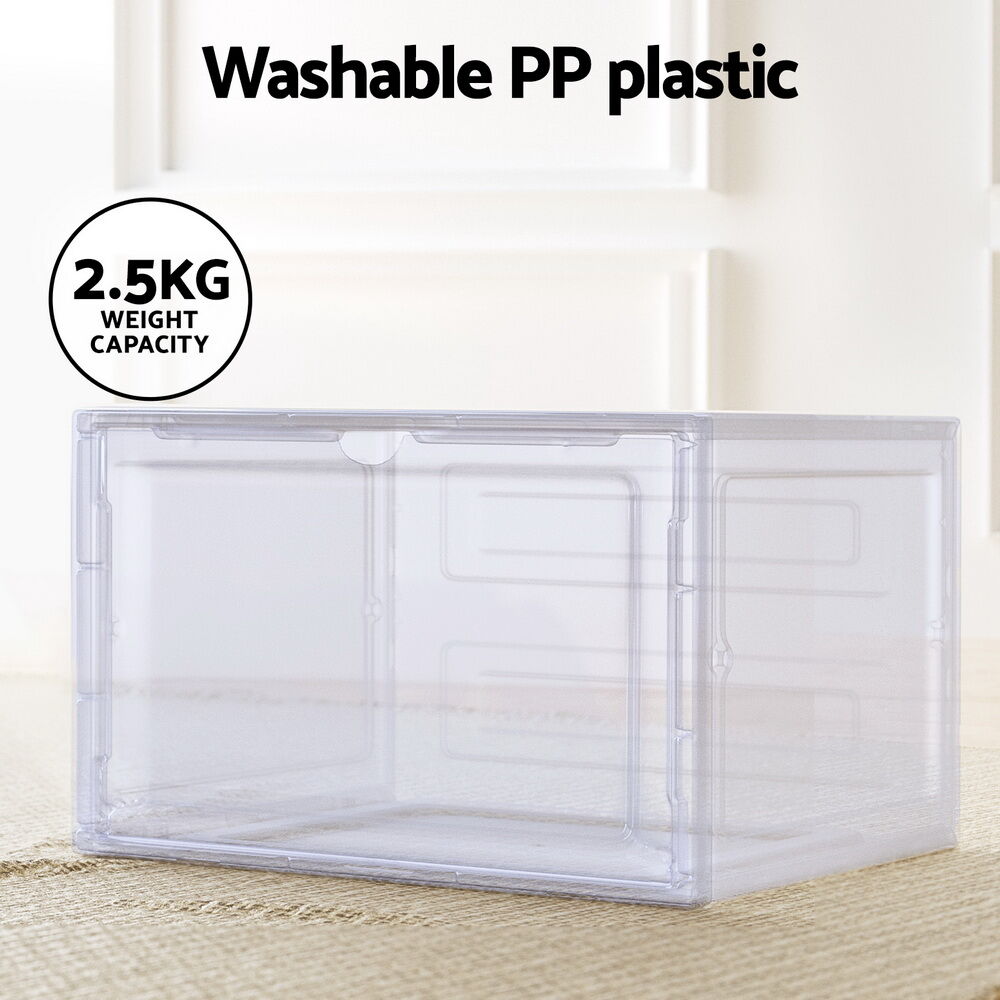 For home shoe storage, you can't beat the Sade Shoe Storage Boxes from Artiss. With a foldable and stackable design, these shoe boxes are not only space-saving but also incredibly convenient. Made from premium PP plastic, they are durable and can hold up to 2.5kg of weight per box. Each box is easy to clean thanks to its smooth surface. The ventilated hole ensures proper air circulation, keeping your shoes fresh and odour-free. The magnetic flip-out lid allows for easy access to your shoes, while the multifunctional design makes them suitable for various uses. Assembly is a breeze, making these shoe boxes a hassle-free addition to your home. With Sade shoe boxes, you can keep your shoes organized and protected in style.