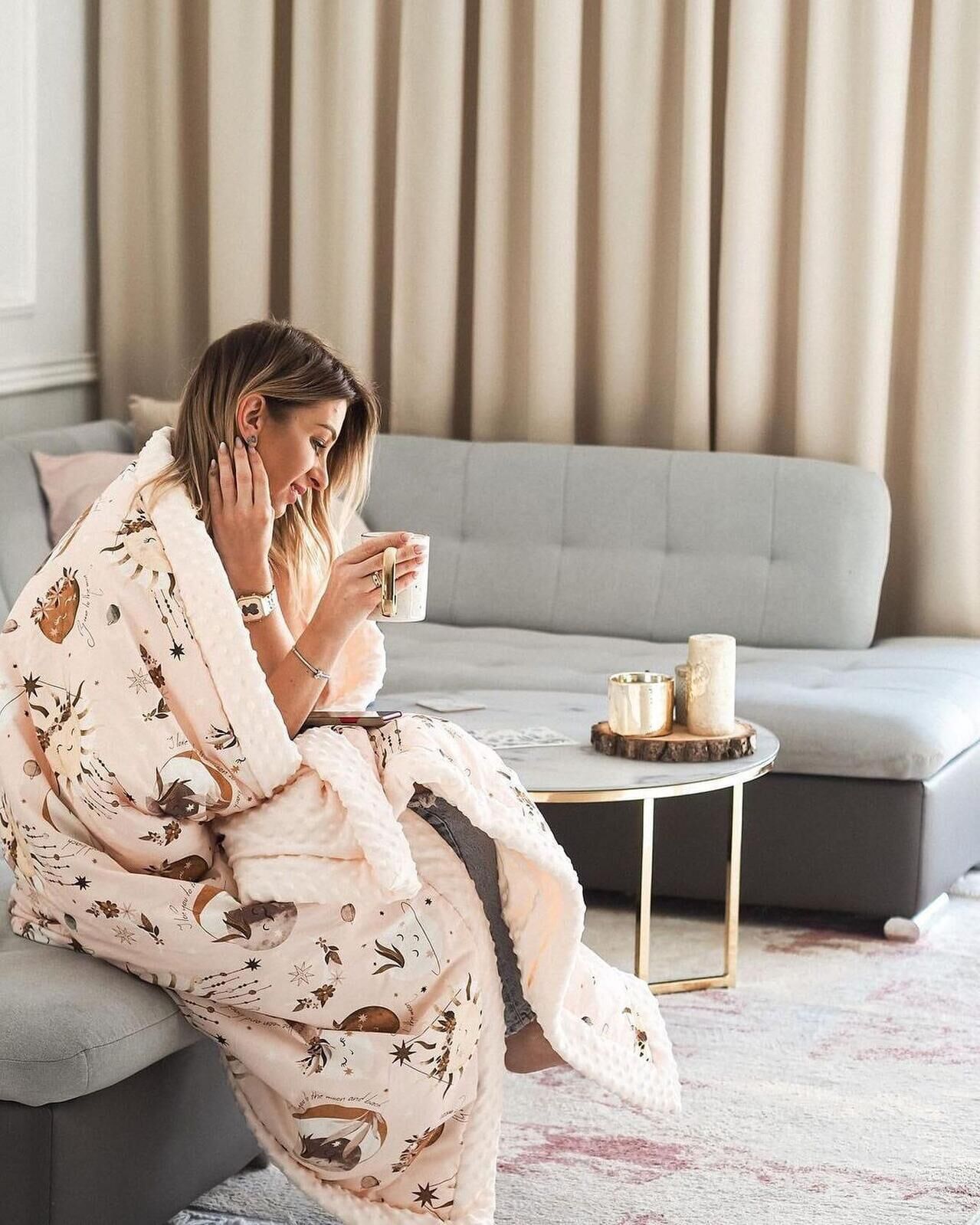 The blanket is filled with hypoallergenic silicone fleece, which makes it extremely light, while providing comforting warmth.