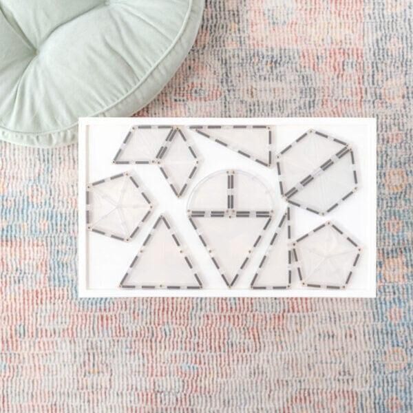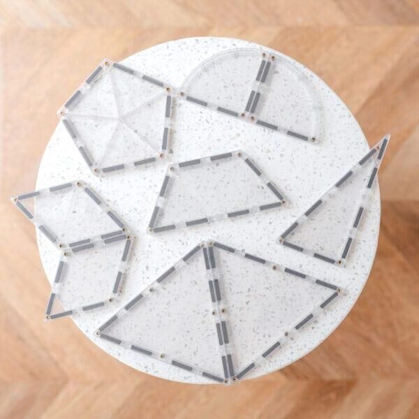 Inspire new ways to play and create with our 24 Piece Clear Shape Expansion Pack! Featuring a variety of magnetic tile shapes including large triangles, right-angle triangles, quarter circles, pentagons, trapezoids, and rhombi, this pack will introduce you to a new world of STEAM learning through play!
