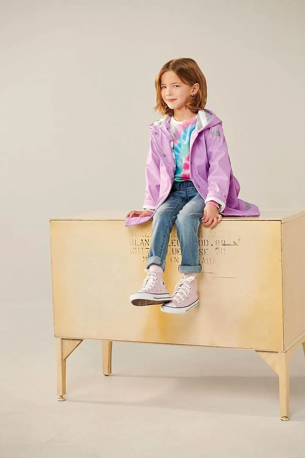 Cure the rainy day blues with this waterproof?lilac rain jacket! Our PVC-free design offers ultimate splash protection and comfort, while the durable construction ensures long-lasting use. Make every rainy day outing a memorable one.