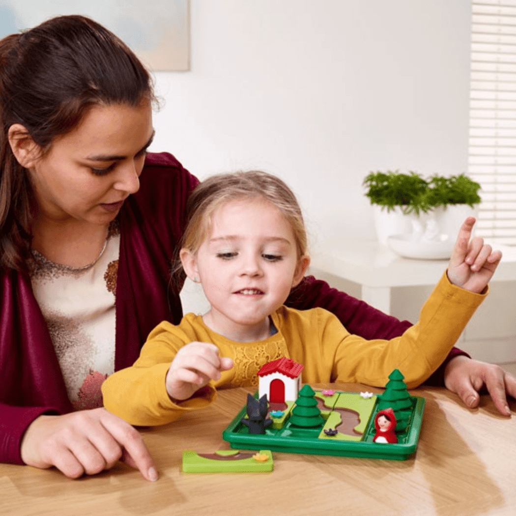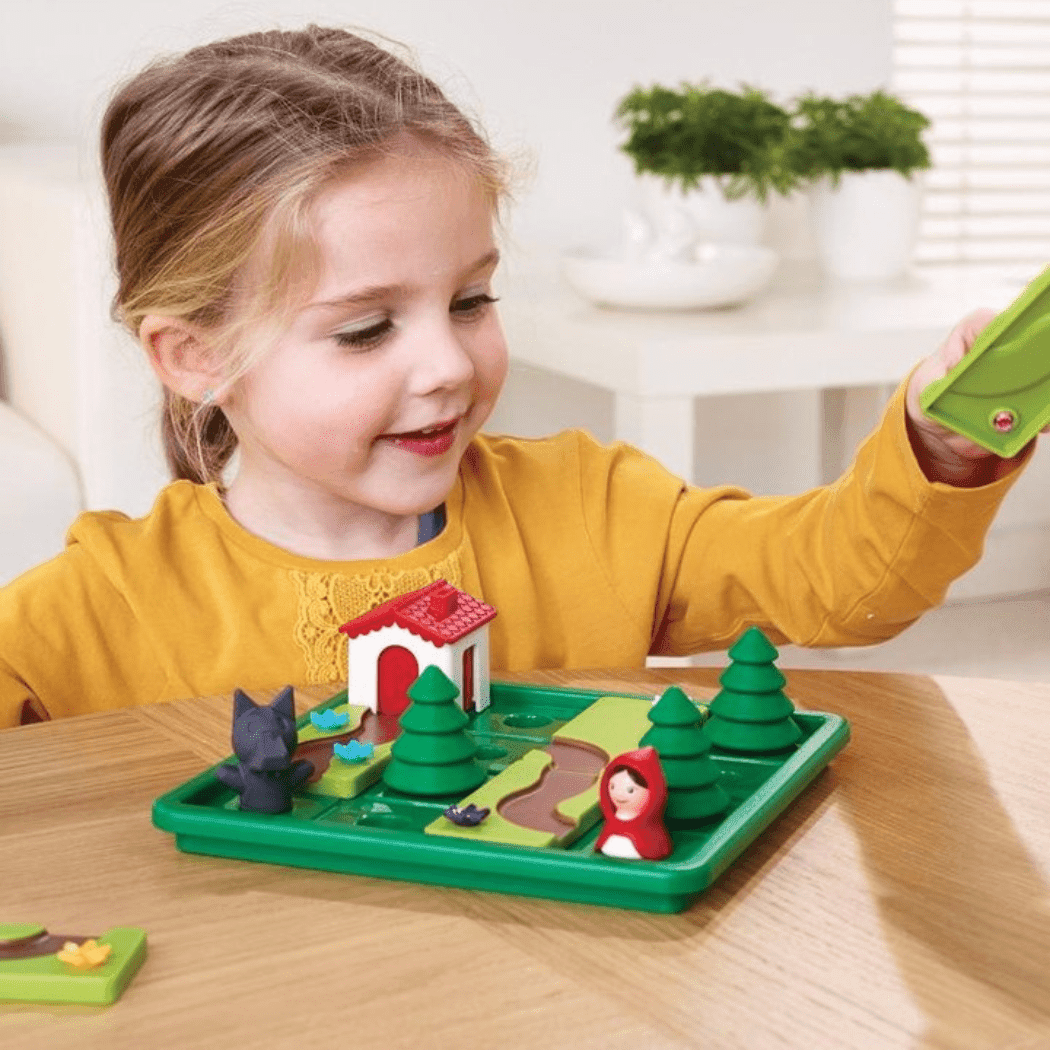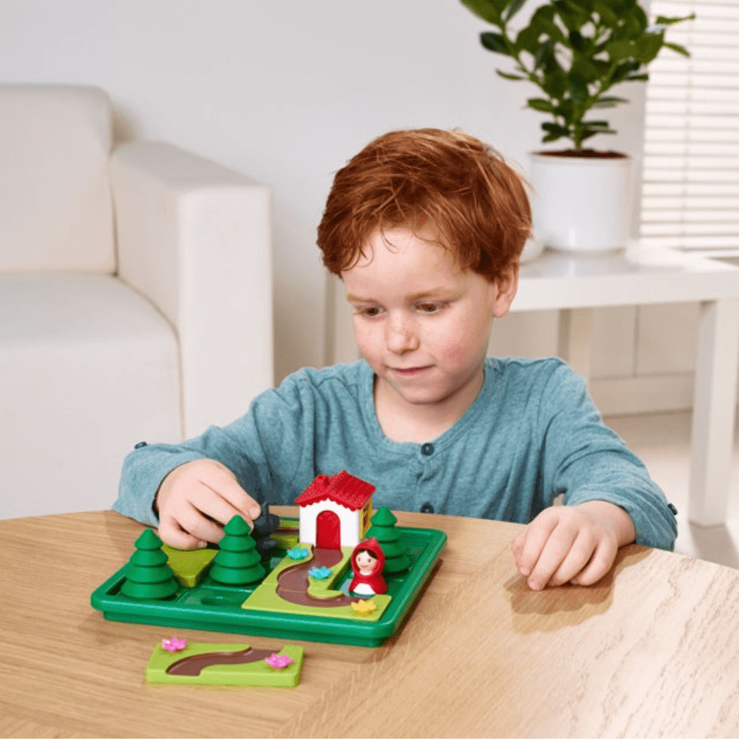 Place Little Red Riding Hood, the house and the trees on the game board and use the puzzle pieces to make a path to Grandma?s house. Add the Wolf to the equation and make?two paths to Grandma?s House, one for Little Red Riding Hood, and one for the Wolf.