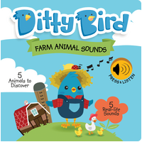 Let's join Ditty Bird and take a walk around the farm. Press the sound button on each page to listen to real-life animal sounds and ?Moo?, ?Baa?, ?Quack? along with our favorite animal sounds song!