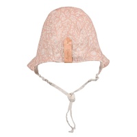 Sweet, simple line drawings of assorted flora pop against the dusky pink backdrop. A reverse of Flax matching the illustrations keeps it breezy and beautiful. Freya is available in Ruffle Bonnet, Flap Hat, Panelled Bucket, Wide-Brim Bonnet, Ladies Wide-Brim Visor, Adults Frayed Bucket and Ladies Sun Hat.