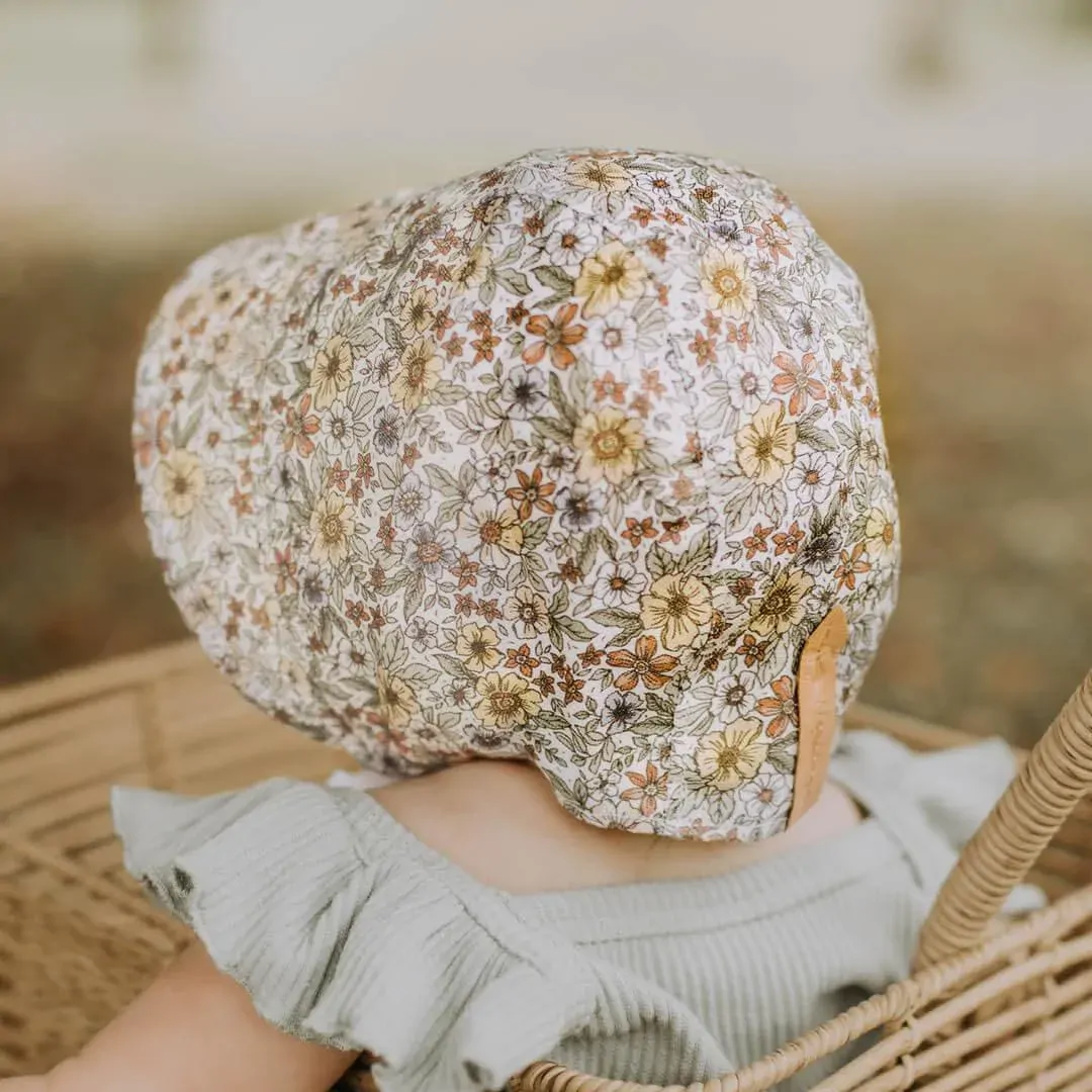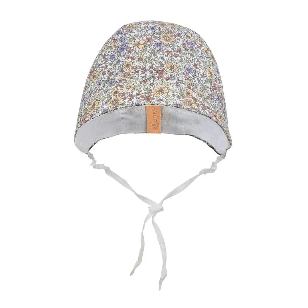 We can?t help picturing wandering a flower garden at sunset in when we see this print! Subtle colours but plenty to look at with a bunch of flowers in burnt orange, soft apricot, white and lavender. A crisp, clean white is the reverse for light and breezy summer days. Winnie is available in Baby Flap Hat, Bonnet, Panelled Bucket and Ladies Sun Hat.
