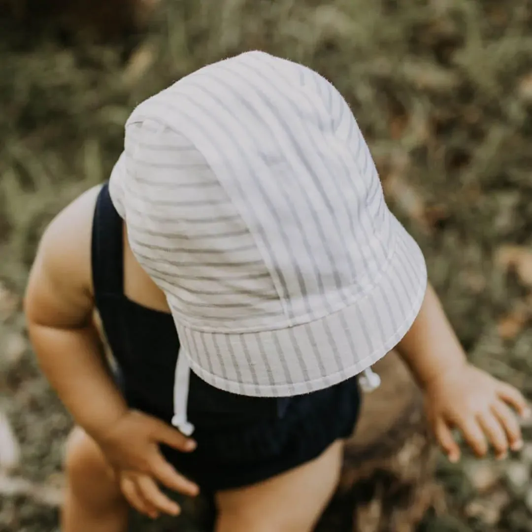 You can?t get more classic than a stripe ? and a soft dove grey stripe at that! This go-with-everything colour and pattern suits all genders, all ages and all tastes! We?ve paired it with a pure white to get the best of both neutral worlds in one hat! Finley is available in Sum Bonnet, Flap Hat, Classic Bucket, Ladies Wide-Brim Visor, Adults Frayed Bucket and Ladies Sun Hat.