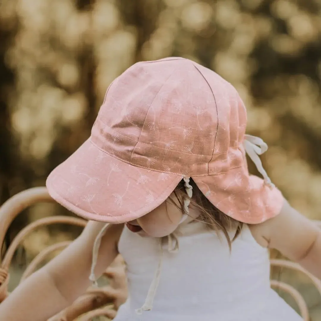 It?s hard to resist blowing a dandelion! These ones are already on their way, floating across a pale pink backdrop? A simply sweet print for those who love a subtle pattern. Reverse is the perfect neutral Flax ? guaranteed to go with everything! Frances is available in Baby Flap Hat, Bonnet, Panelled Bucket and Ladies Sun Hat.