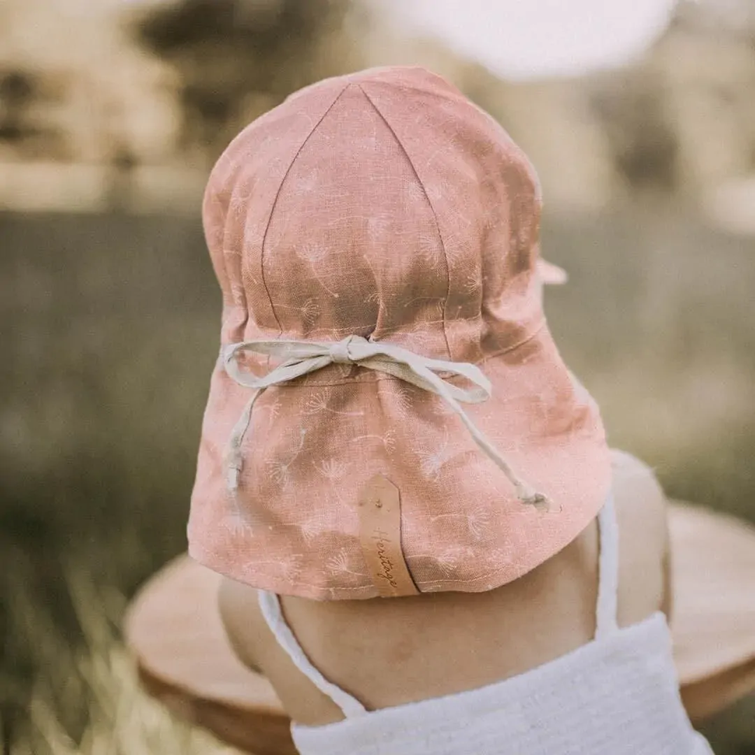 Bedhead Heritage Lounger Baby Flap Hats are light on heads, making them the ideal first hat for babies as they forget they?re wearing them! The soft flap lies flat behind baby?s neck while they?re in a pram or baby carrier, and the brim is slightly upright letting them see the world. Made from 100% eco-friendly linen which can self-cool in summer and warm in winter, the Lounger hat provides UPF50+ sun protection without overheating little heads.