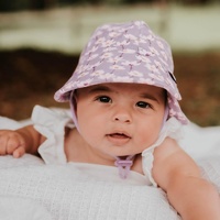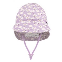 A cousin of sunflowers and daisies, Cosmos are our flower of choice for Spring! Delicate white upturned petals on our gorgeous lilac background, it?s a must for the purple fans! Cosmos is available in Legionnaire, Toddler Bucket and Ponytail Bucket.